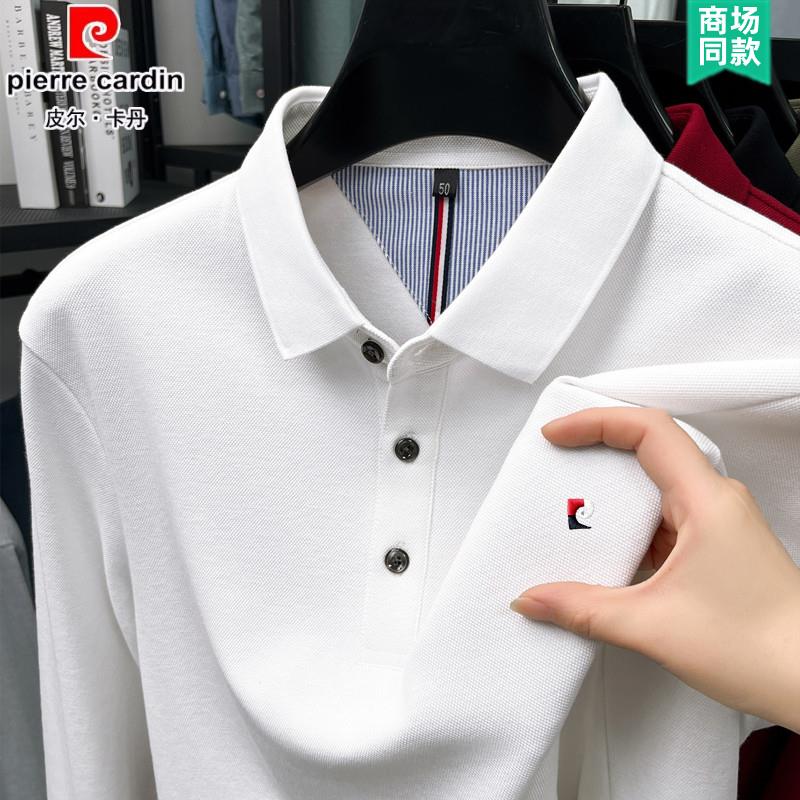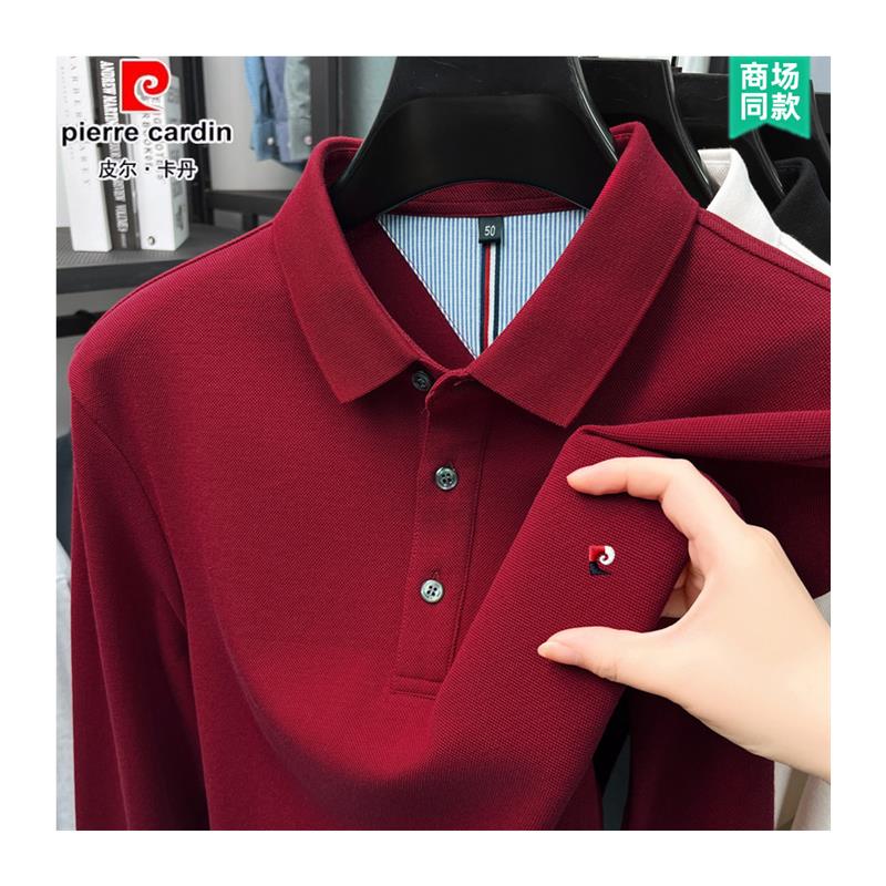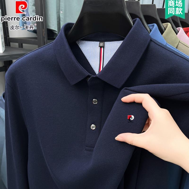 皮尔卡丹纯棉男士长袖t恤2025新款春秋翻领polo衫中年