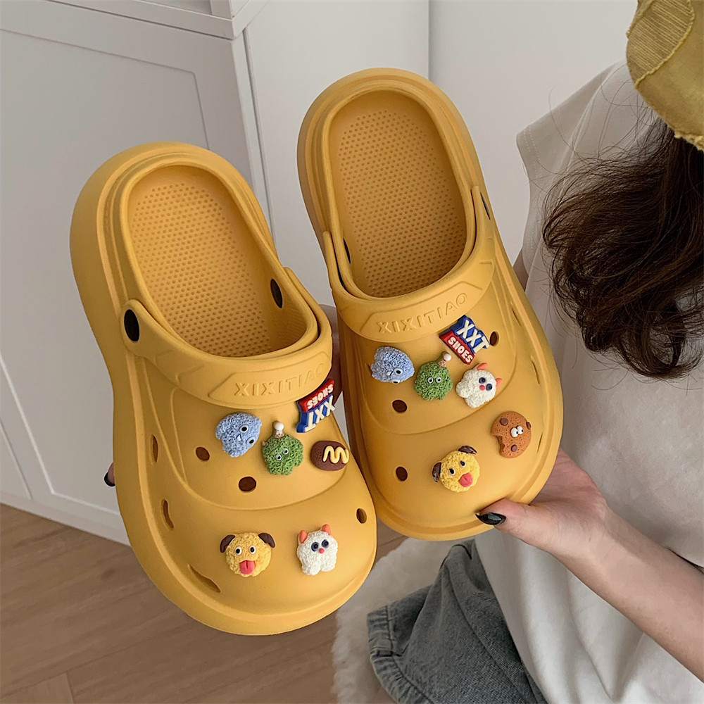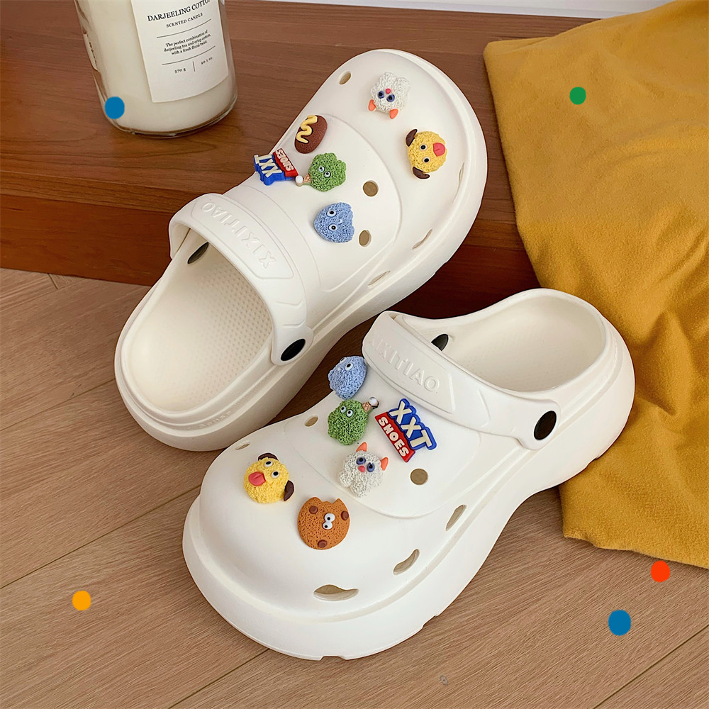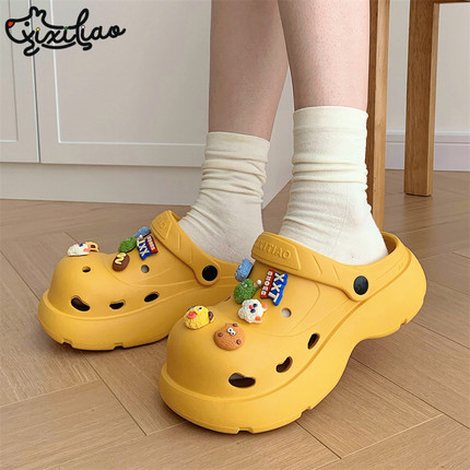 细细条 趣味ins小怪兽女士洞洞鞋户外时尚百搭防滑软厚底沙滩凉拖