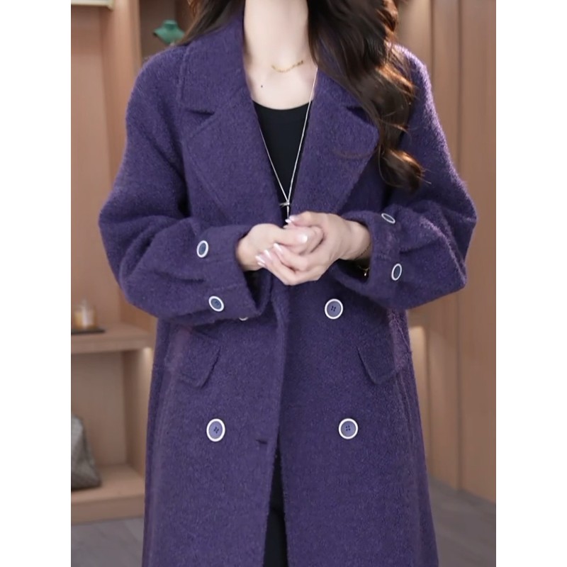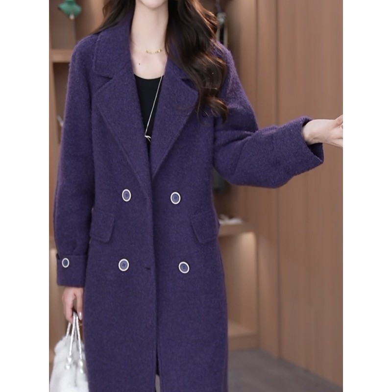 高档紫色毛呢外套女2025年冬季新款中年妈妈装气质显瘦中长款大衣
