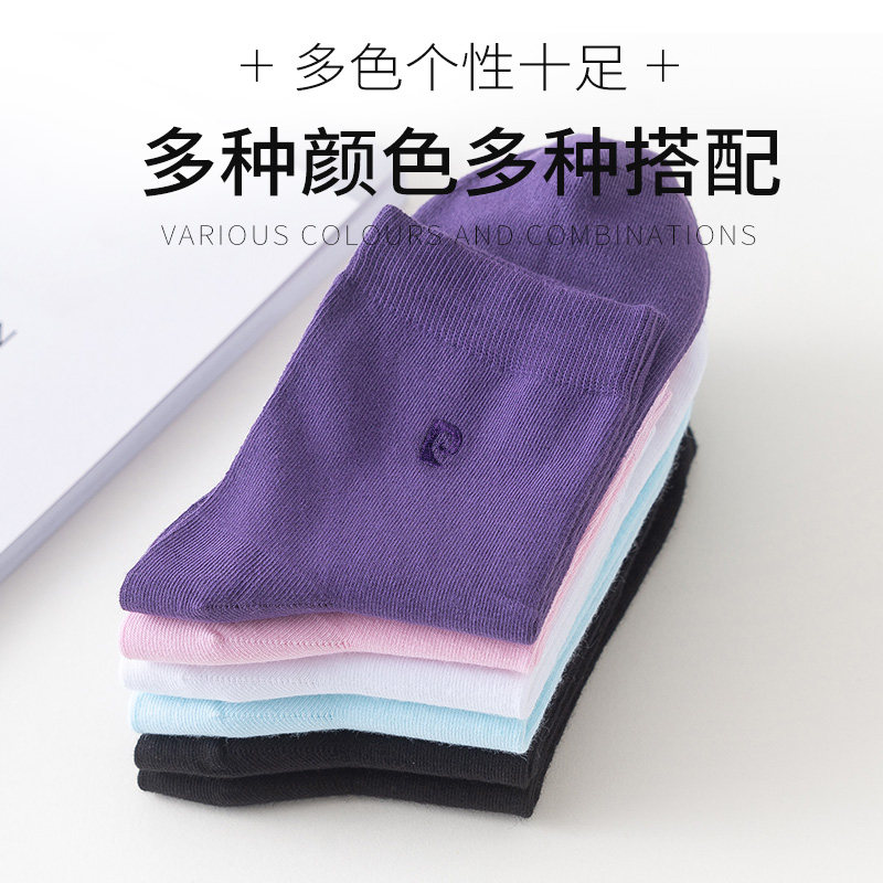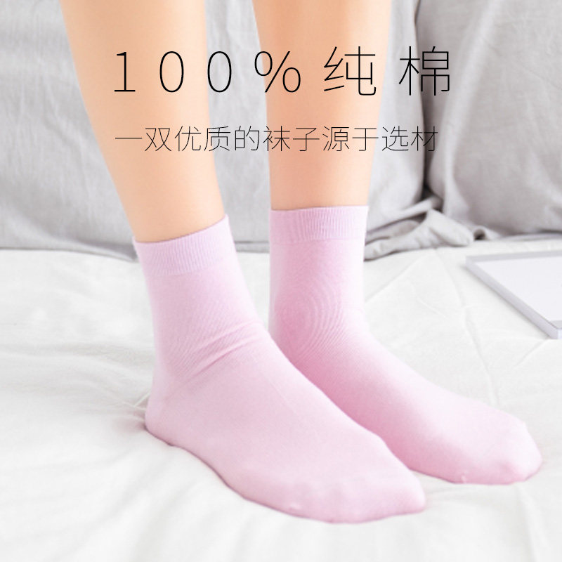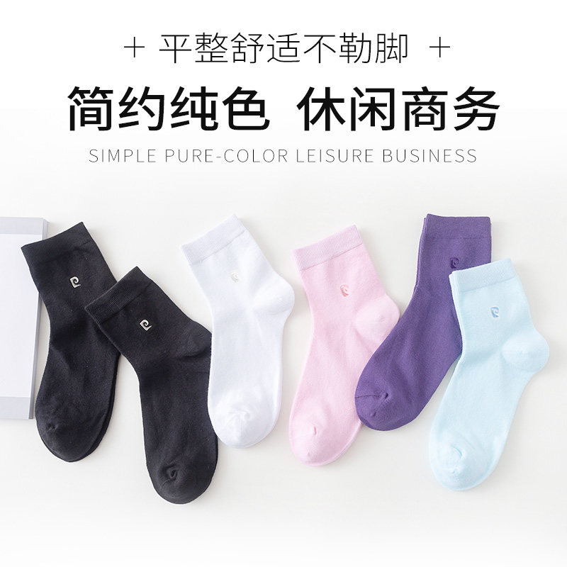 皮尔卡丹袜子女中筒袜纯棉秋冬季加厚女袜纯色全棉袜春季女士长袜
