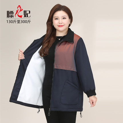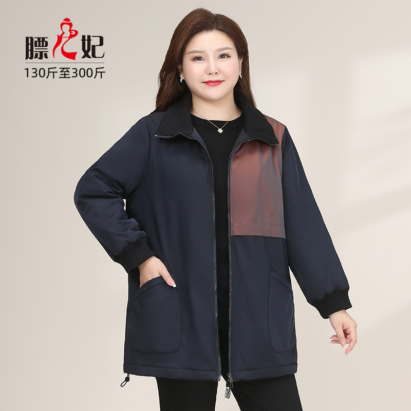 【膘儿妃】大码女装中长款拼接显瘦秋装减龄女士冬装棉服外套