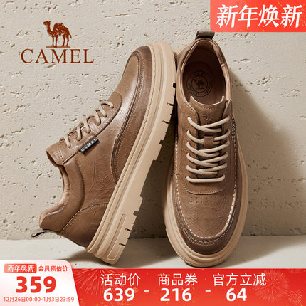 骆驼男鞋2025秋季新款真皮防滑板鞋青年厚底英伦风复古休闲皮鞋男