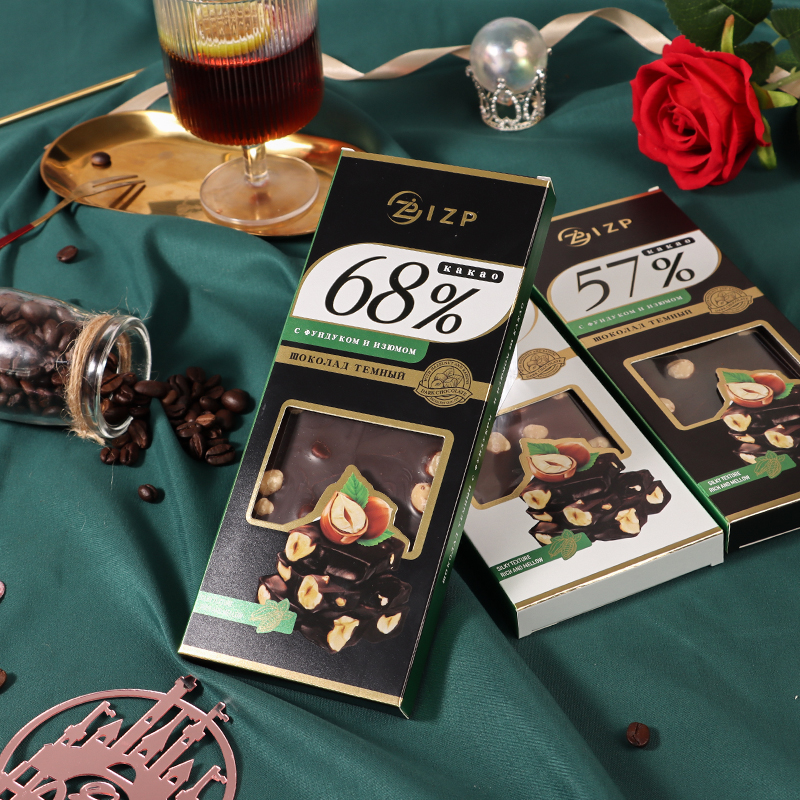 俄罗斯黑巧克力IZP盒装纯可可脂微苦整颗榛子夹心零食礼物巧克力