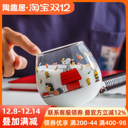 史努比玻璃杯Snoopy卡通美式不倒翁杯甜品杯牛奶杯饮品杯饮料可爱