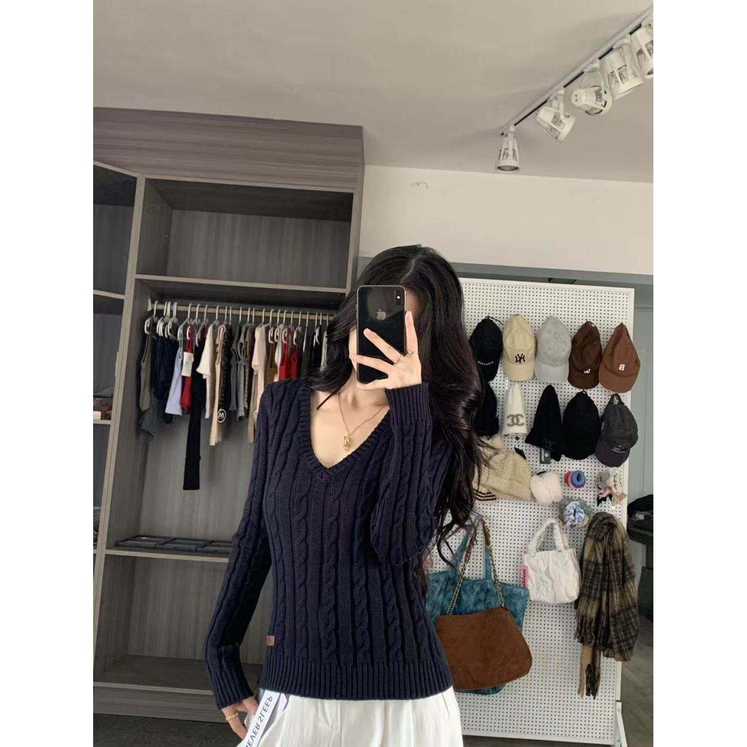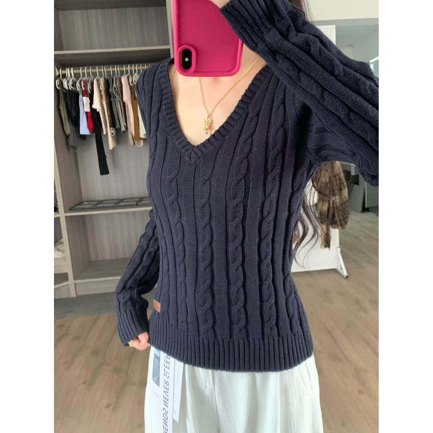 韩系白色毛衣女秋冬季穿搭气质百搭麻花针织衫长袖套头上衣打底衫