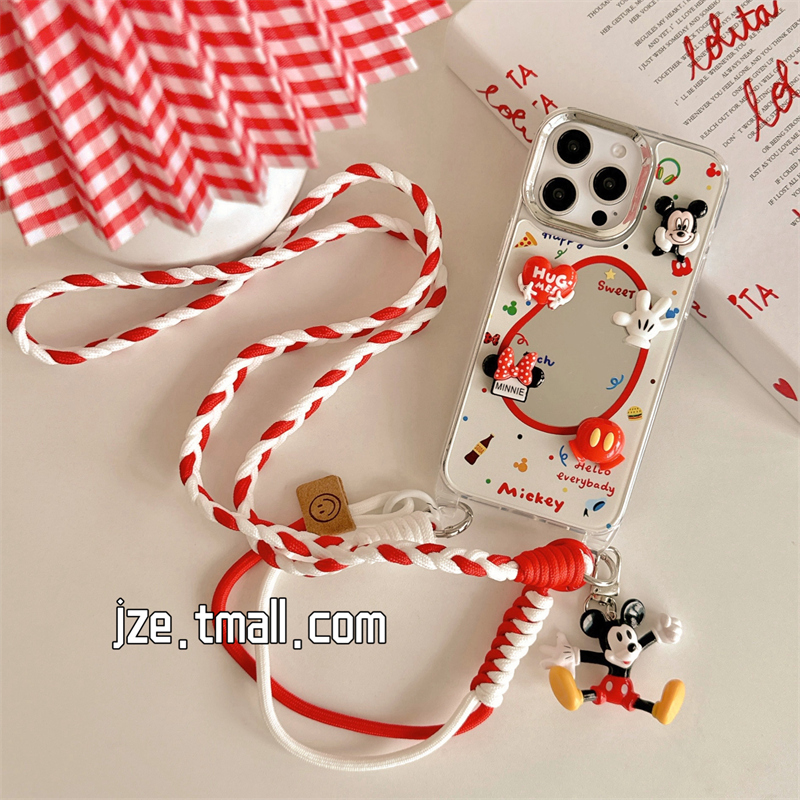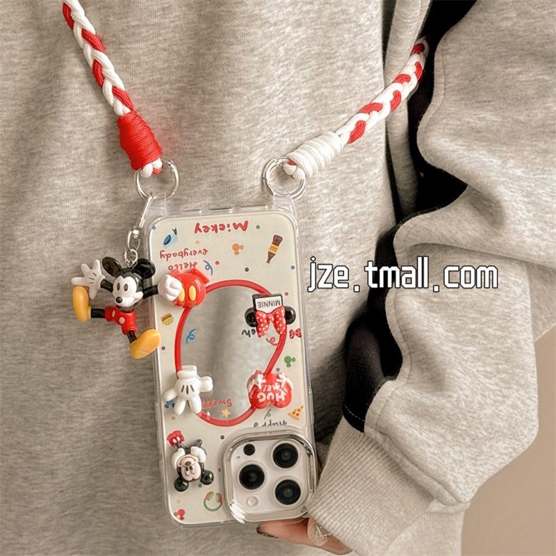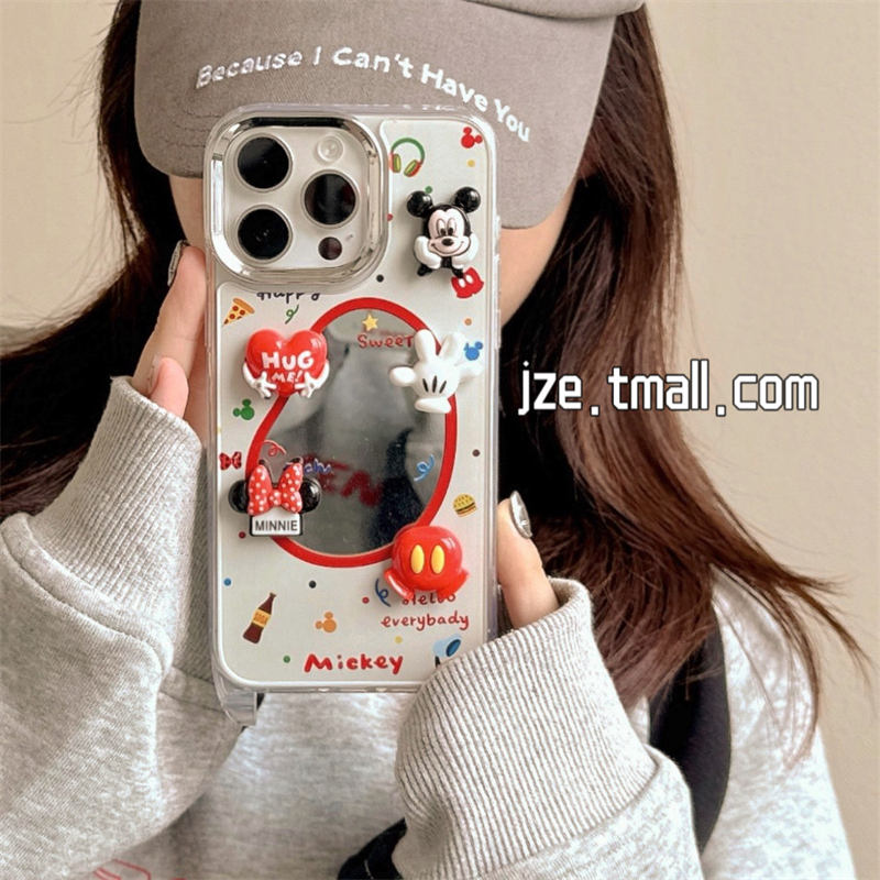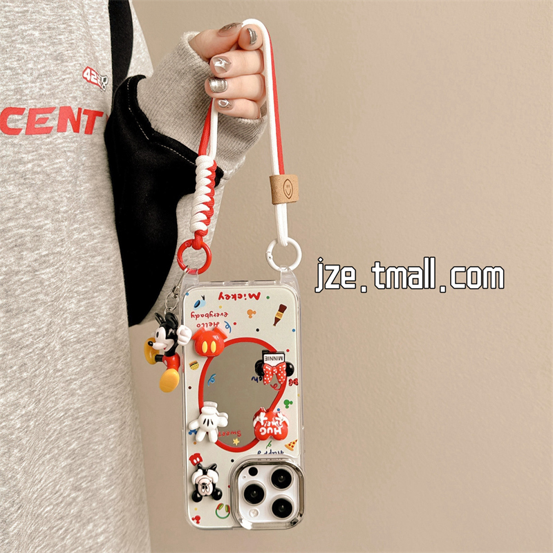 jze立体可爱卡通米奇镜子适用苹果15手机壳iphone16ProMax新款15promax女款13带挂绳16pro超好看14全包保护套