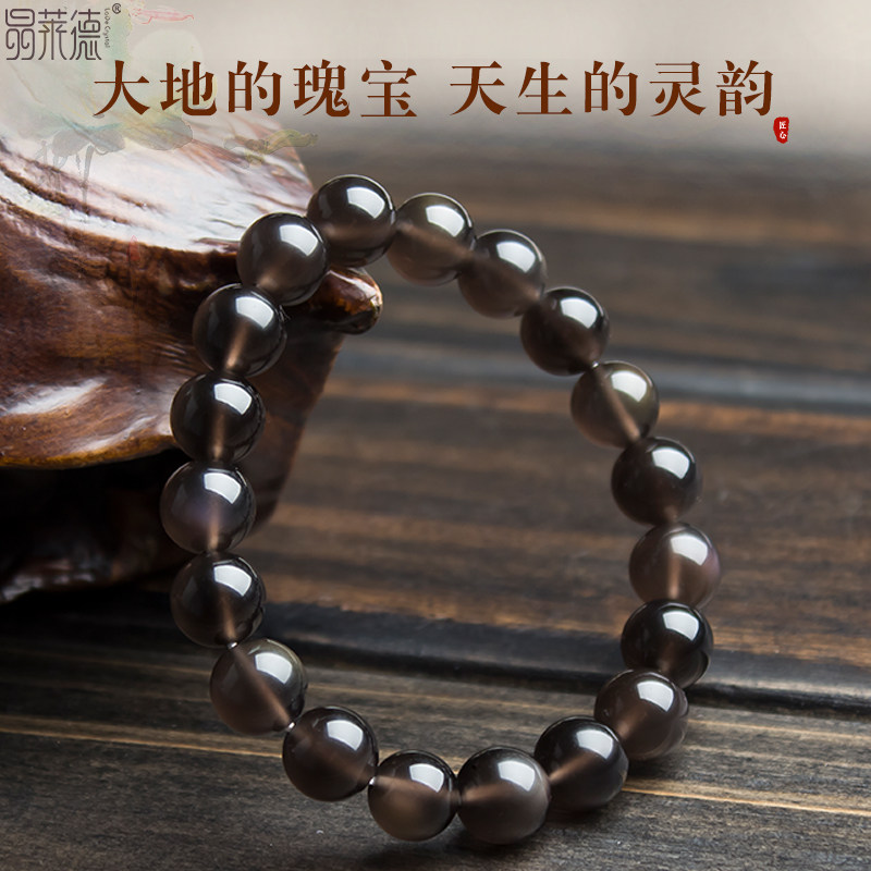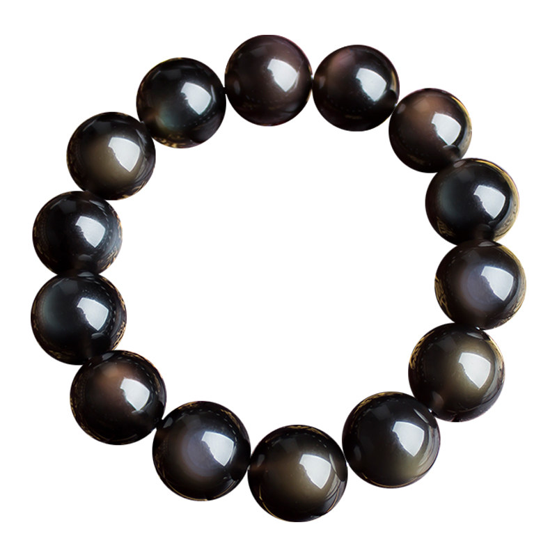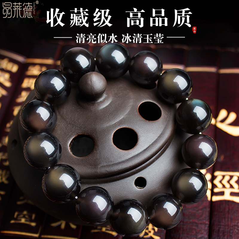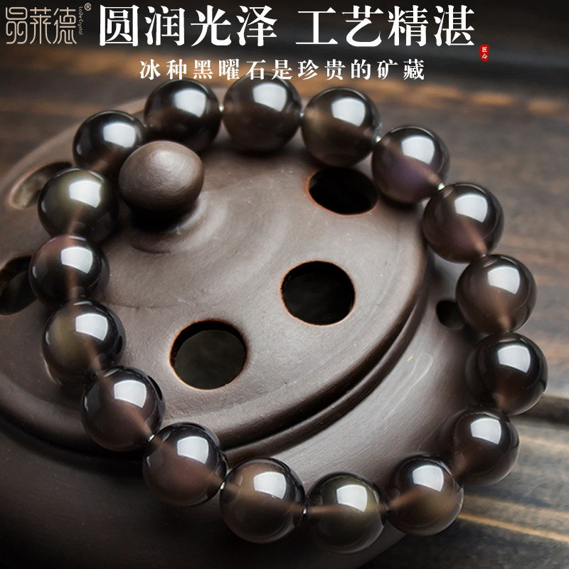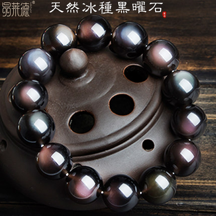 天然冰种黑曜石单圈手链彩虹猫眼水晶佛珠手串男女款情侣饰品礼物