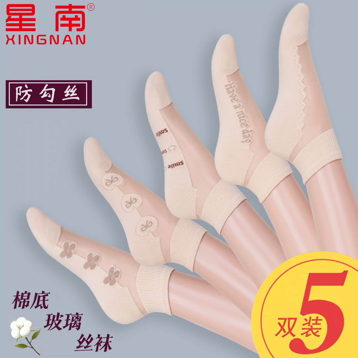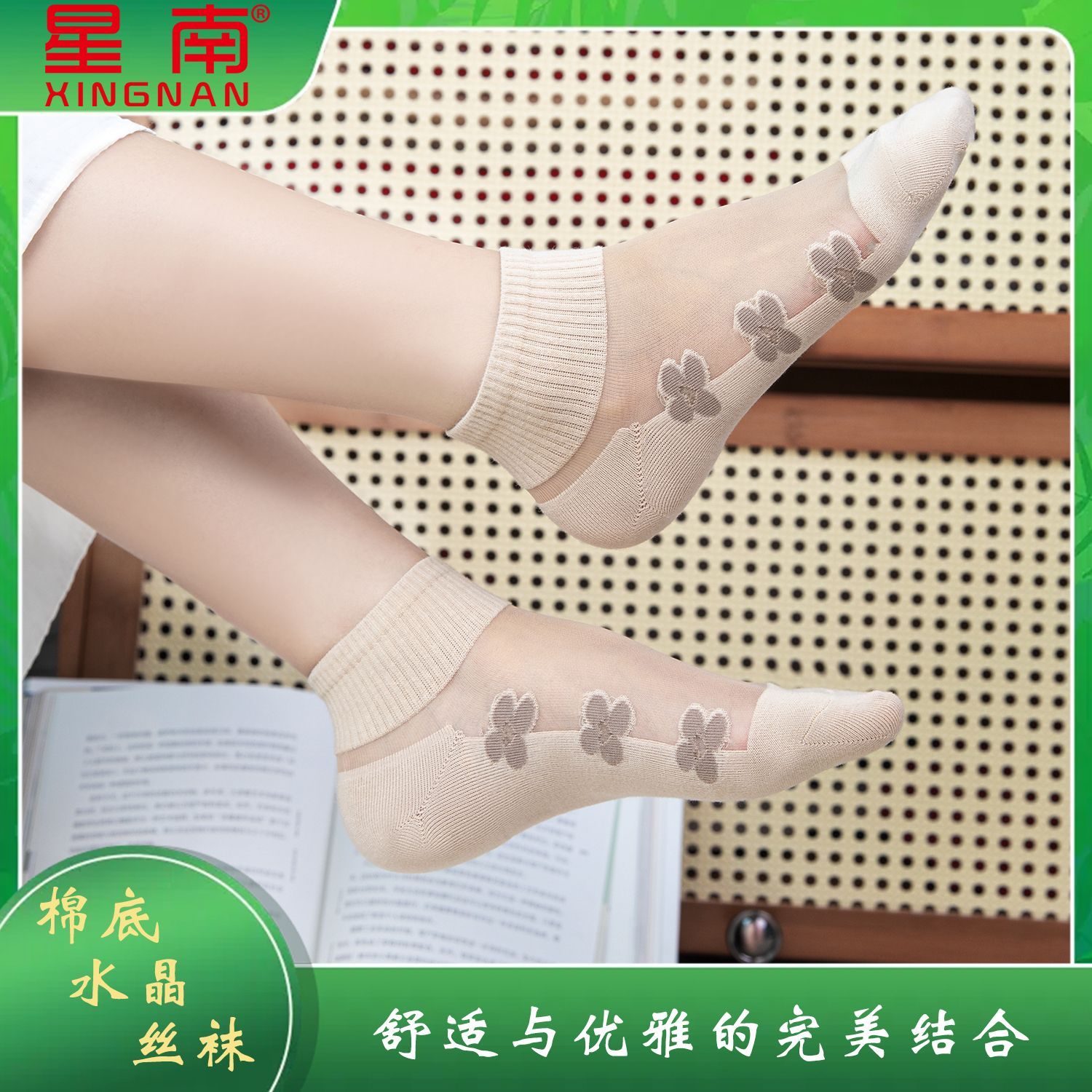 袜子女春夏季肉色薄款透明纯棉底浅口玻璃冰丝袜水晶蕾丝肤色短袜