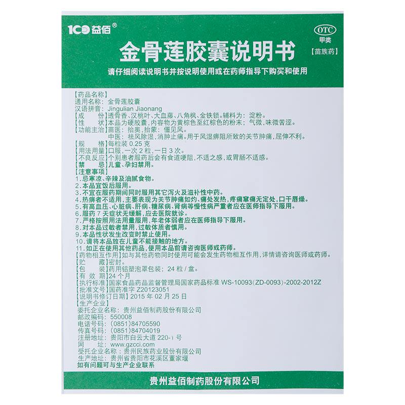 益佰金骨莲胶囊多少钱一盒官方旗舰店祛风除湿筋骨药房正品风湿