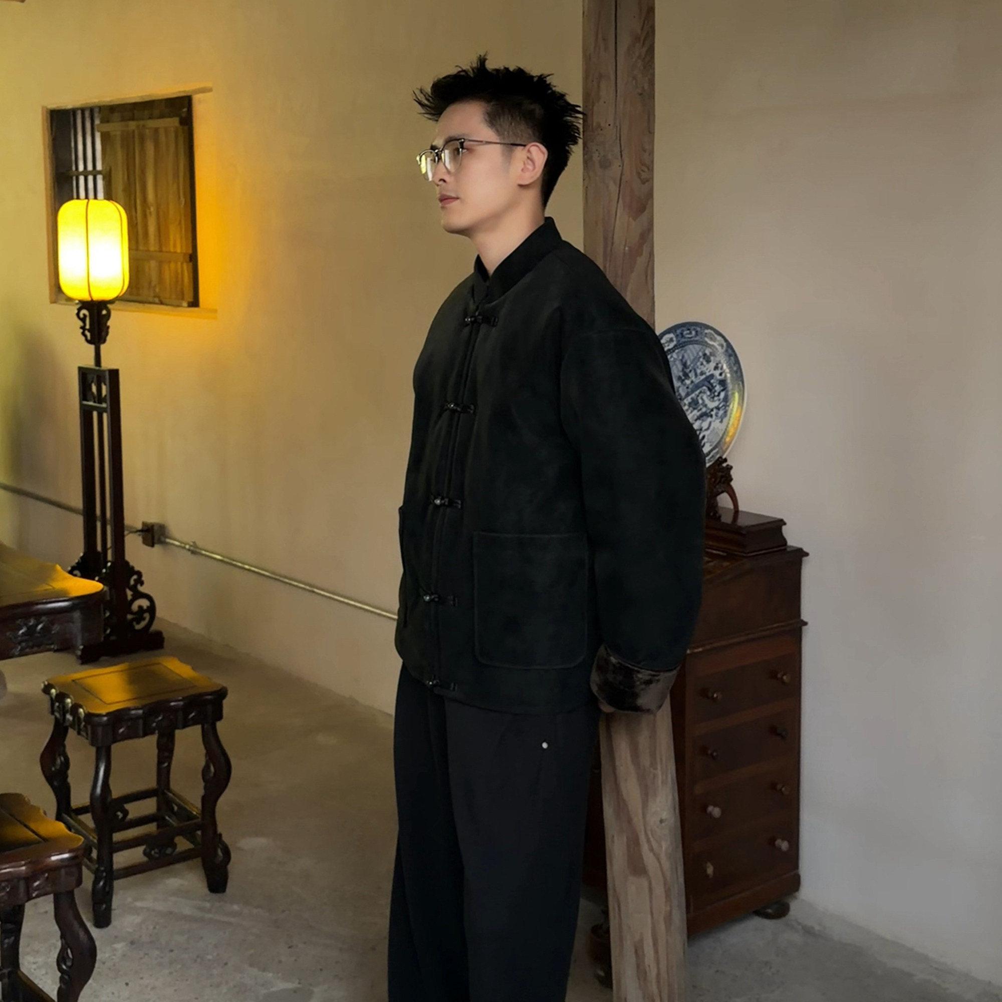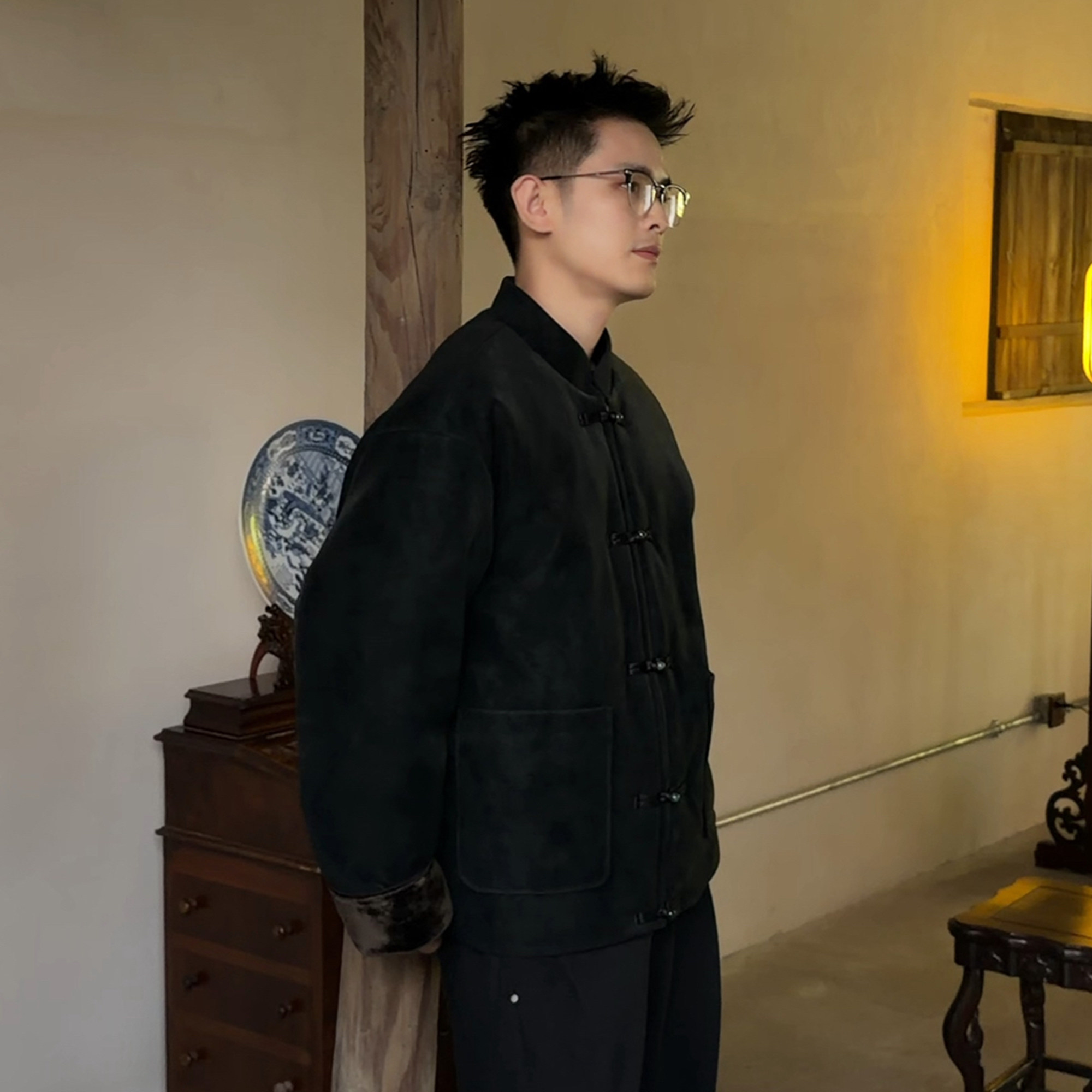 NYHSUGOO/南乙新中式皮料桑蚕丝绒拼接国标90鹅绒服55102男士外套