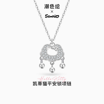 潮色绘xHellokitty项链女平安长命银锁纯银吊坠精致饰品生日礼物