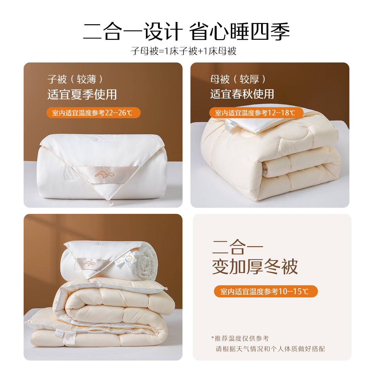 水星家纺蚕丝澳洲羊毛被芯抗菌防螨二合一被保暖子母被床上用品