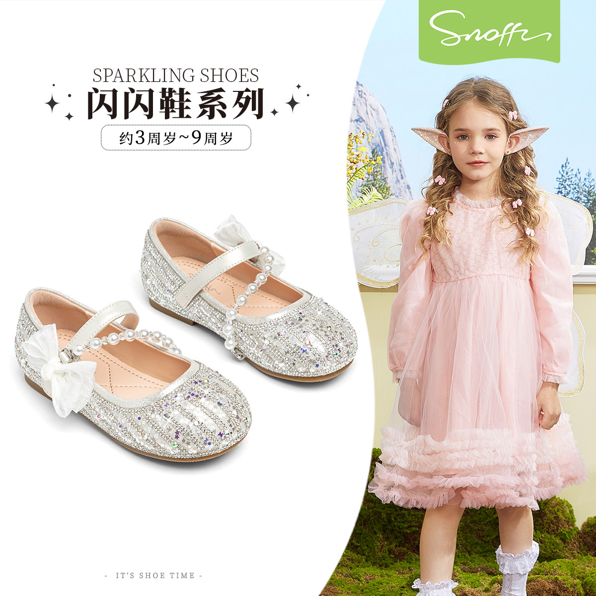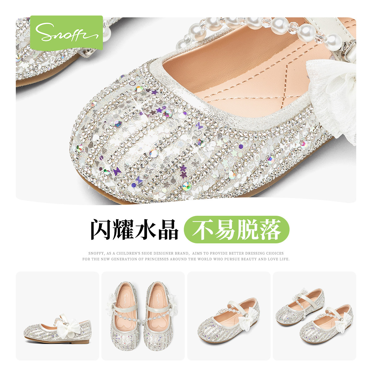 斯纳菲女童皮鞋闪亮公主鞋水晶鞋