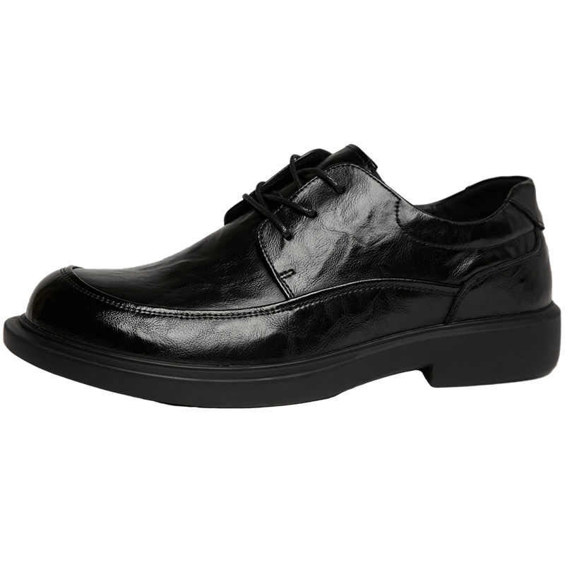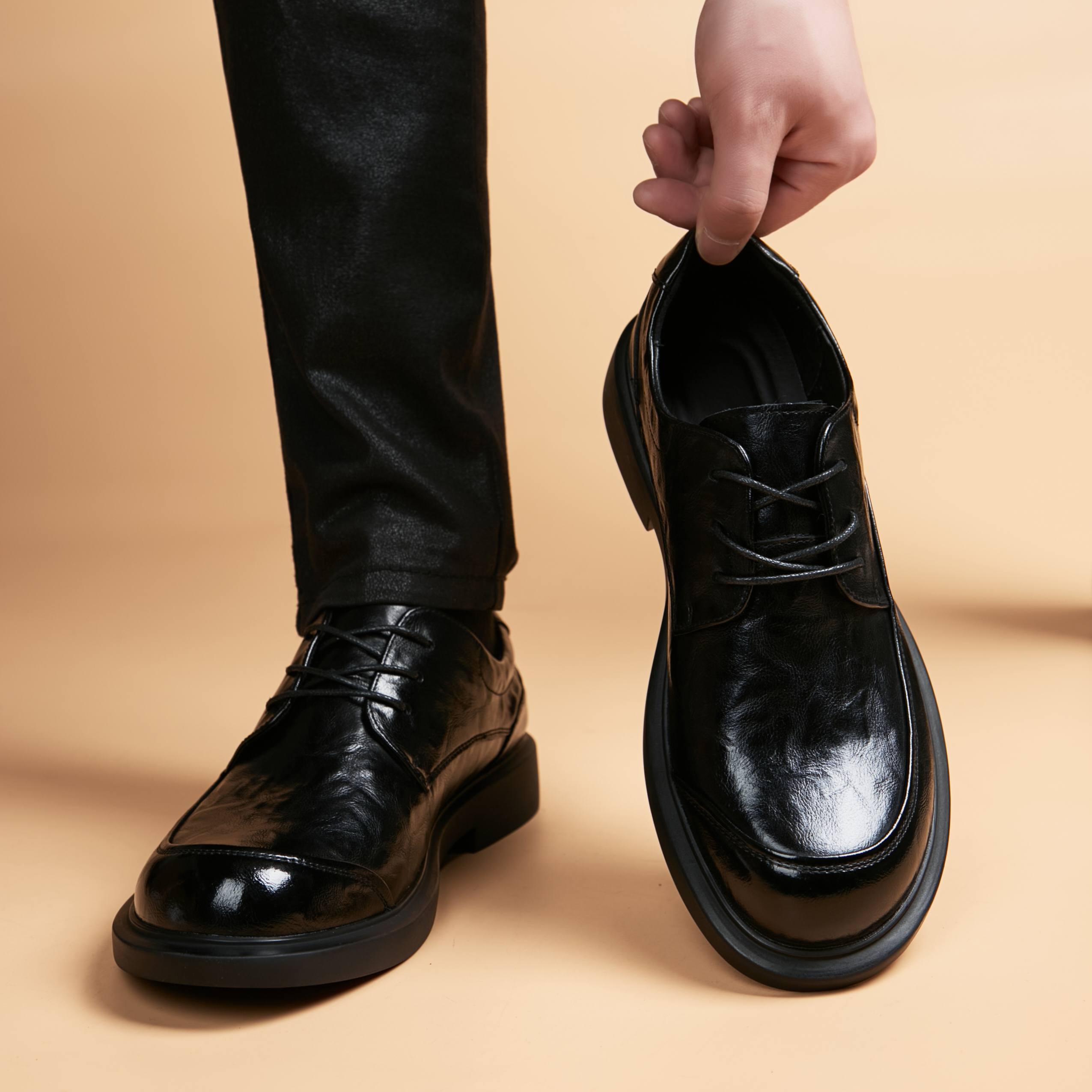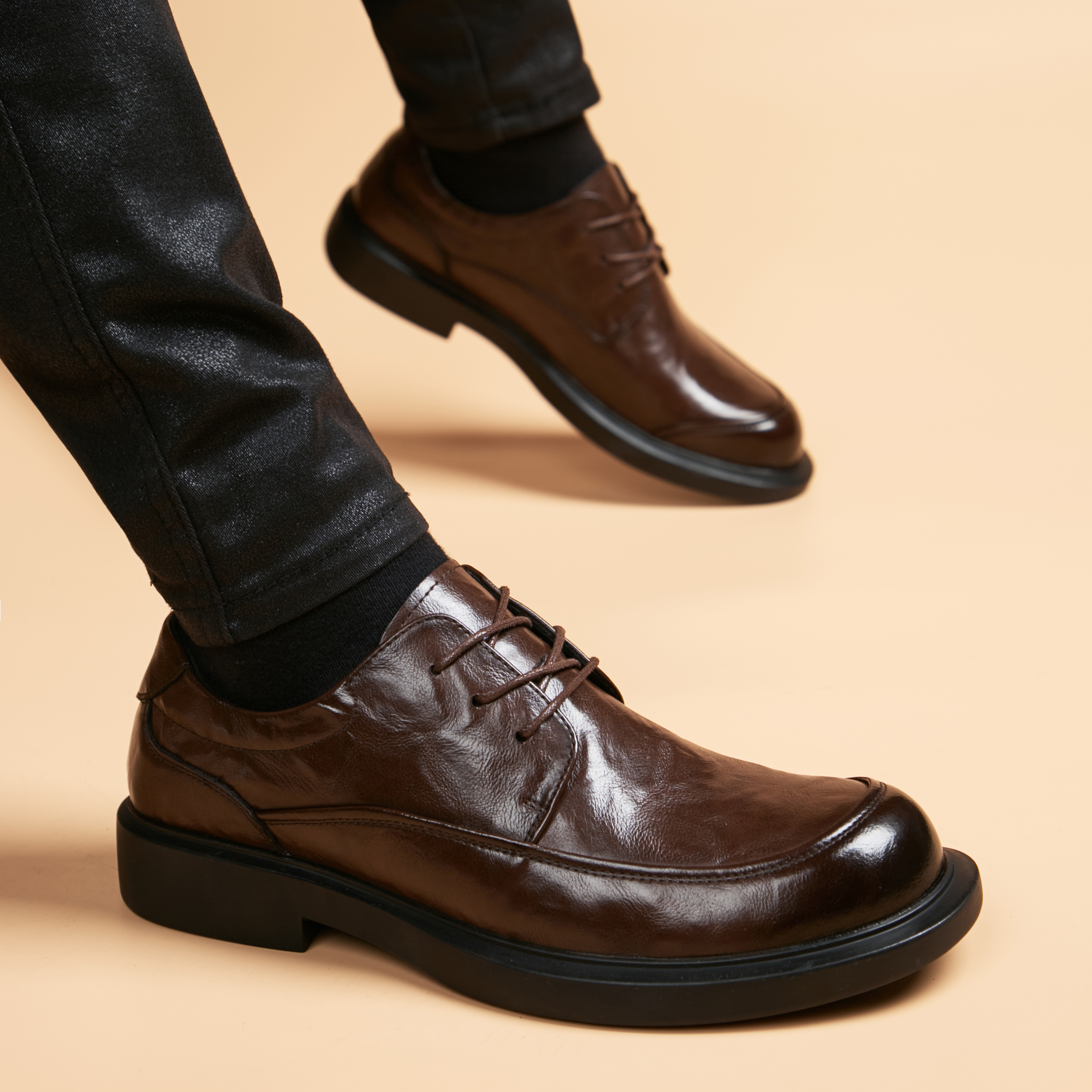皮鞋男秋季新款潮流休闲英伦商务正装男士内增高圆头皮鞋真皮透气