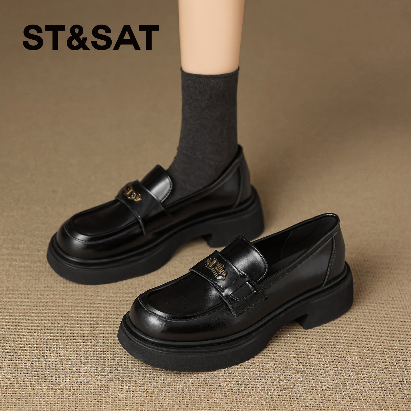 星期六英伦复古厚底女乐福鞋