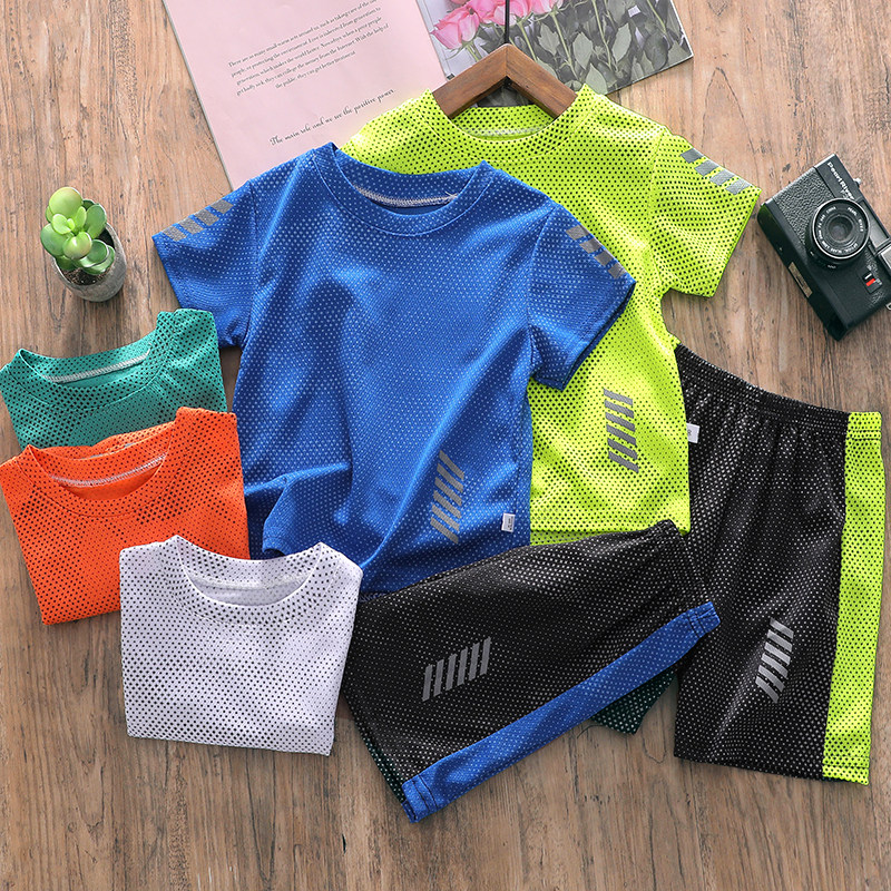 男童夏装套装儿童短袖短裤速干衣薄网眼衣服夏季中大童运动两件套