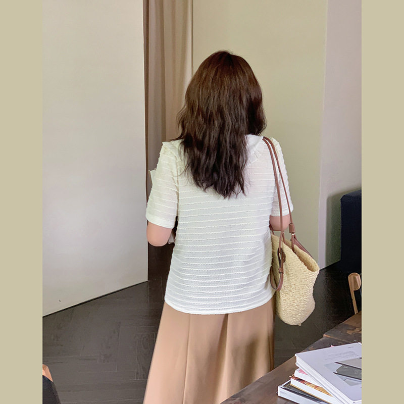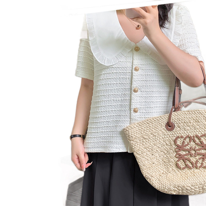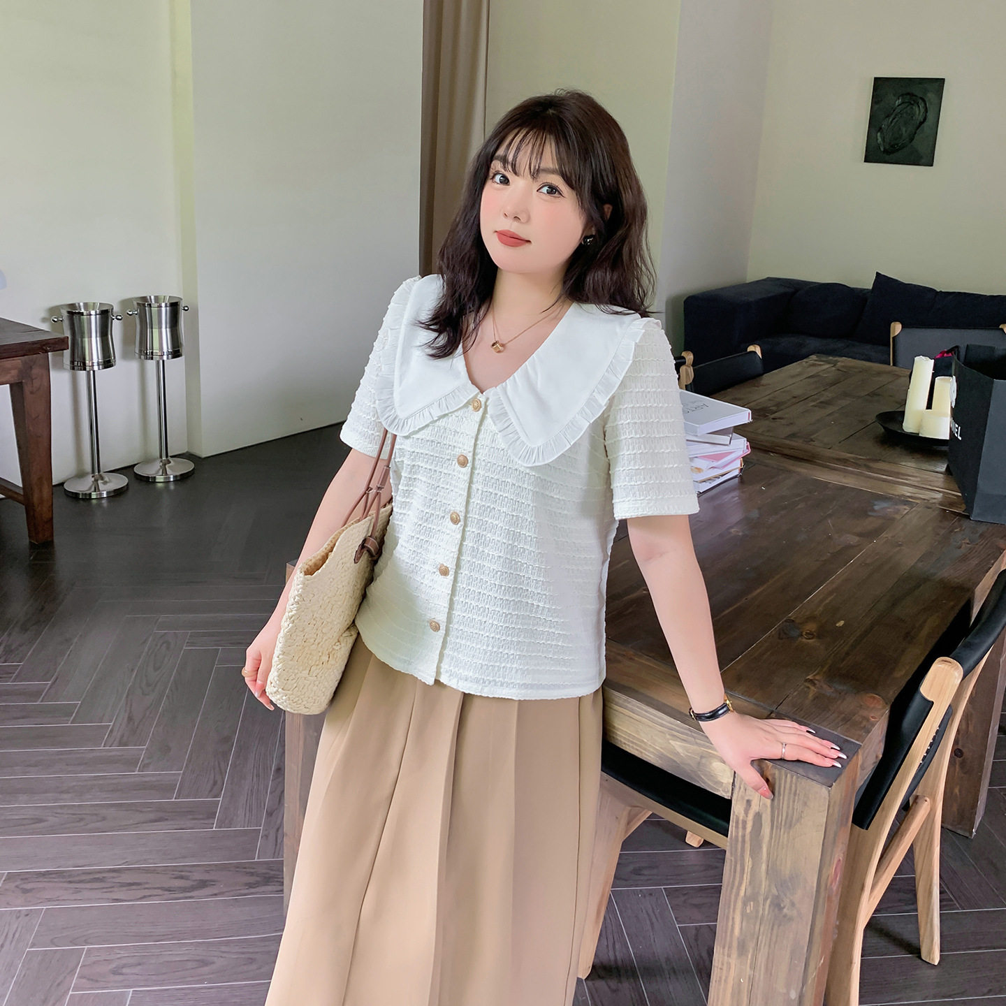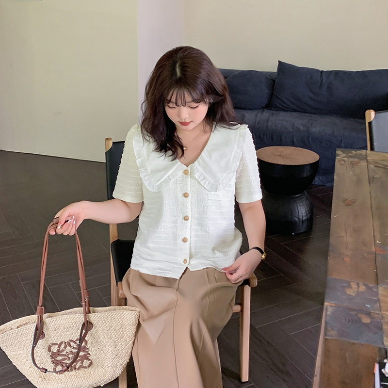 7781大码夏季新款韩版娃娃领短袖衬衫女宽松显瘦百搭通勤风上衣