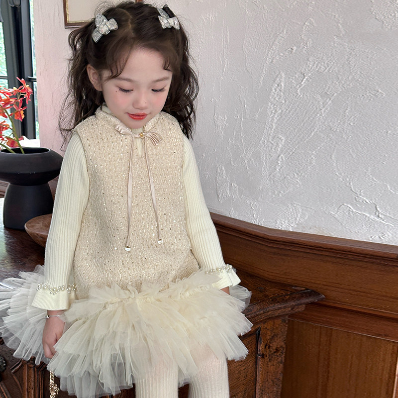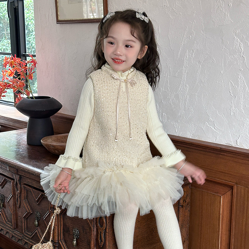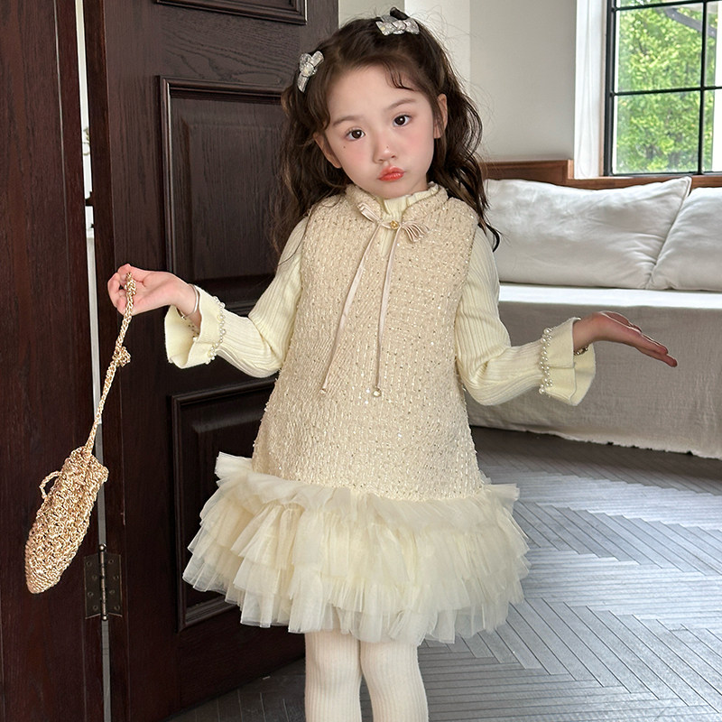女宝新中式小香风亮片网纱背心裙