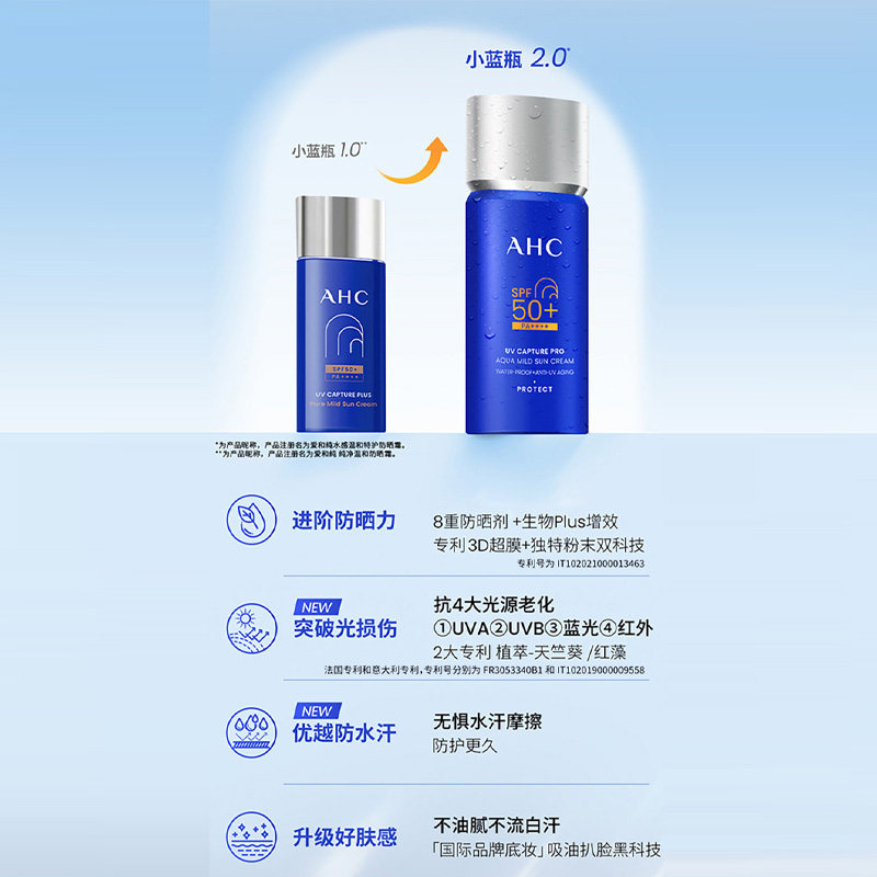 【自营】AHC防晒霜小蓝瓶2.0防紫外线面部隔离高倍防嗮乳