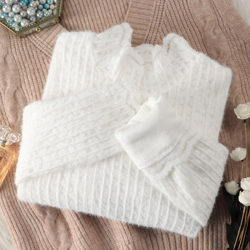秋冬磨毛蕾丝打底衫女加绒半高领洋气小衫女内搭长袖气质网纱上衣