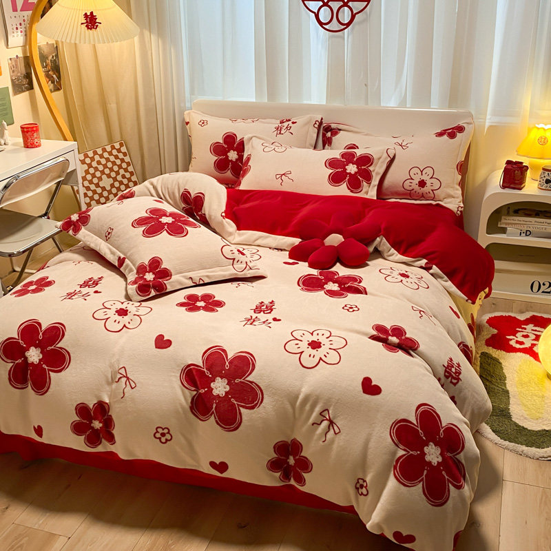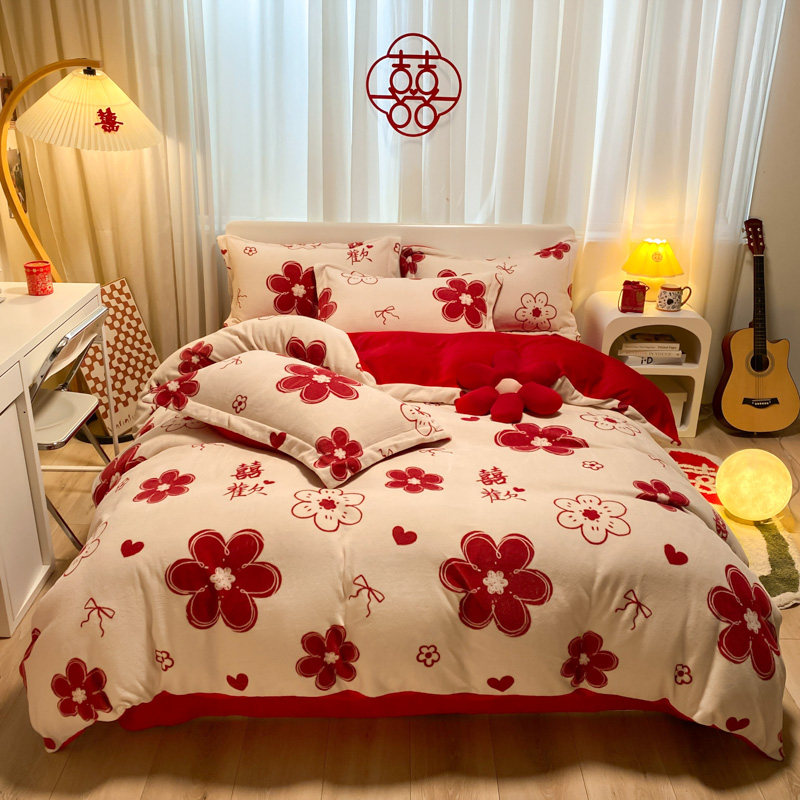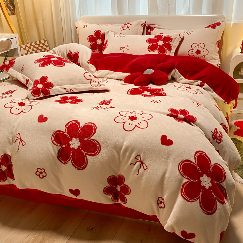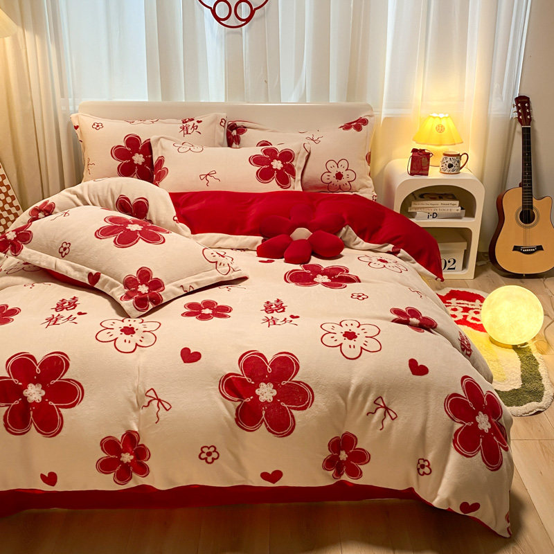 牛奶绒四件套婚庆珊瑚绒结婚婚庆