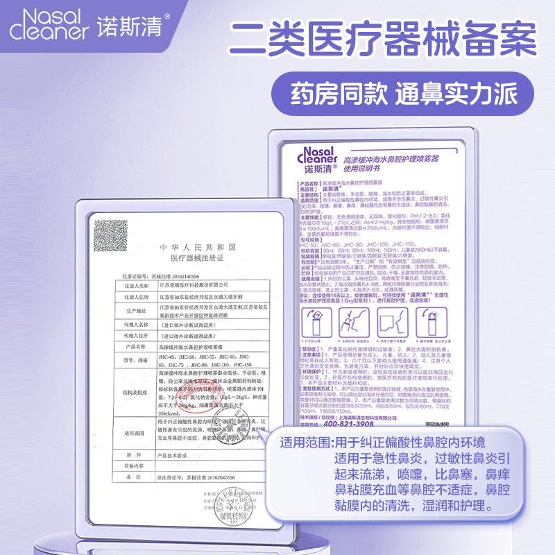 诺斯清高渗生理性洗鼻器海盐水儿童鼻炎鼻塞鼻腔护理喷雾清洁冲洗