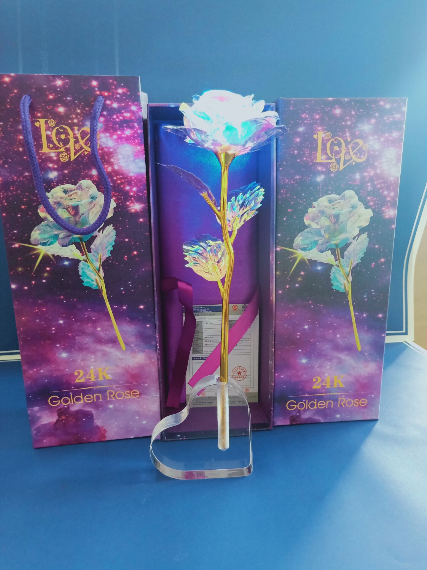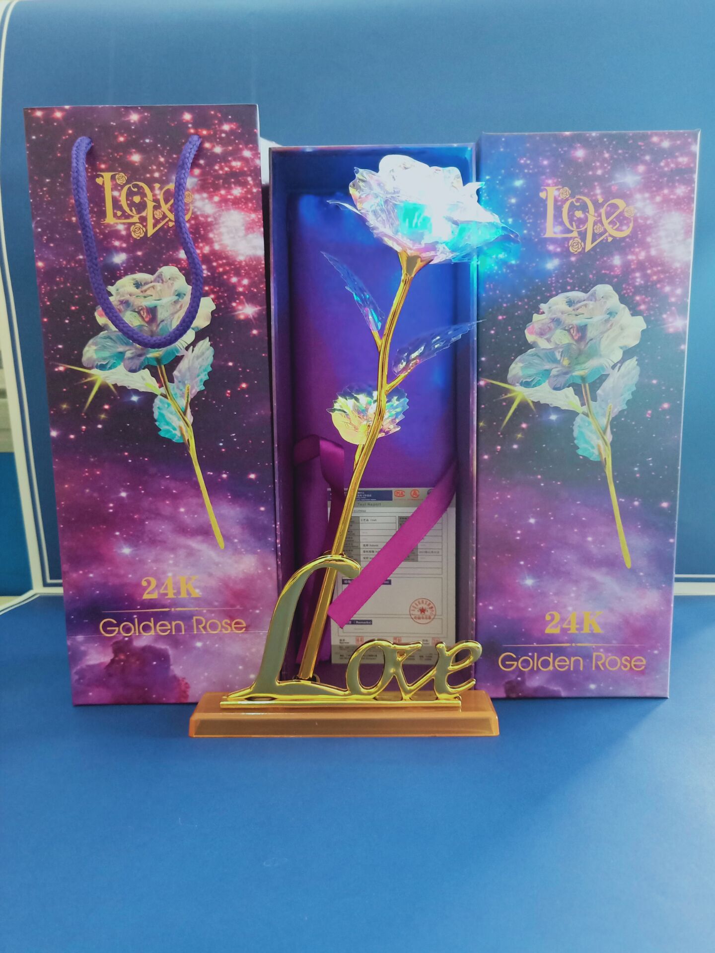 金玫瑰花冰晶金箔玫瑰花摆件创意礼物品实用情人送女友老婆