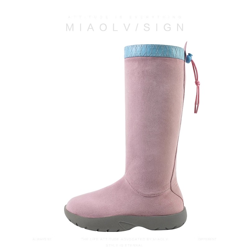 防滑牛反绒雪地靴女长筒羊毛棉靴