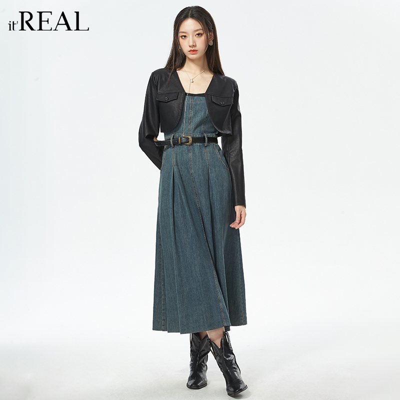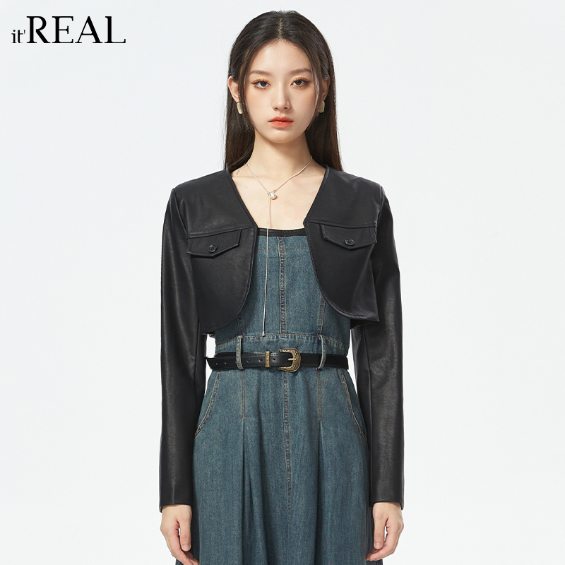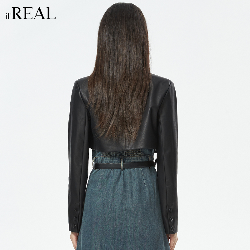 it'real瑞尔设计感超短款皮衣秋冬新款V领外搭长袖PU短外套女