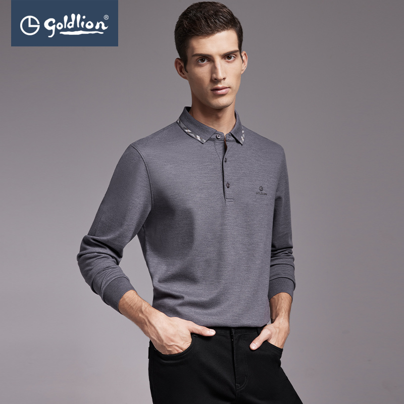 金利来秋冬季新款男士长袖T恤商务衣服拼色翻领POLO衫上衣