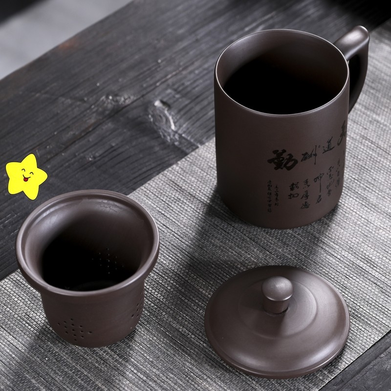 紫砂办公杯茶杯带盖过滤内胆陶瓷家用喝水大容量刻字杯子礼品定制