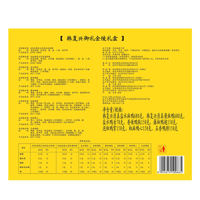 韩复兴御礼金陵2180g江苏南京特产盐水鸭酱板鸭食品礼盒中秋送礼