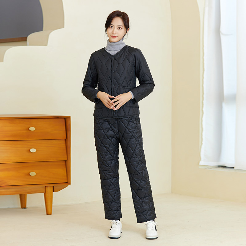 秋冬轻薄款长袖长裤家居服套装女士棉衣棉裤保暖睡衣妈妈夹棉睡衣