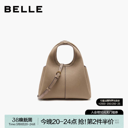 百丽新款头层牛皮单肩斜挎女包