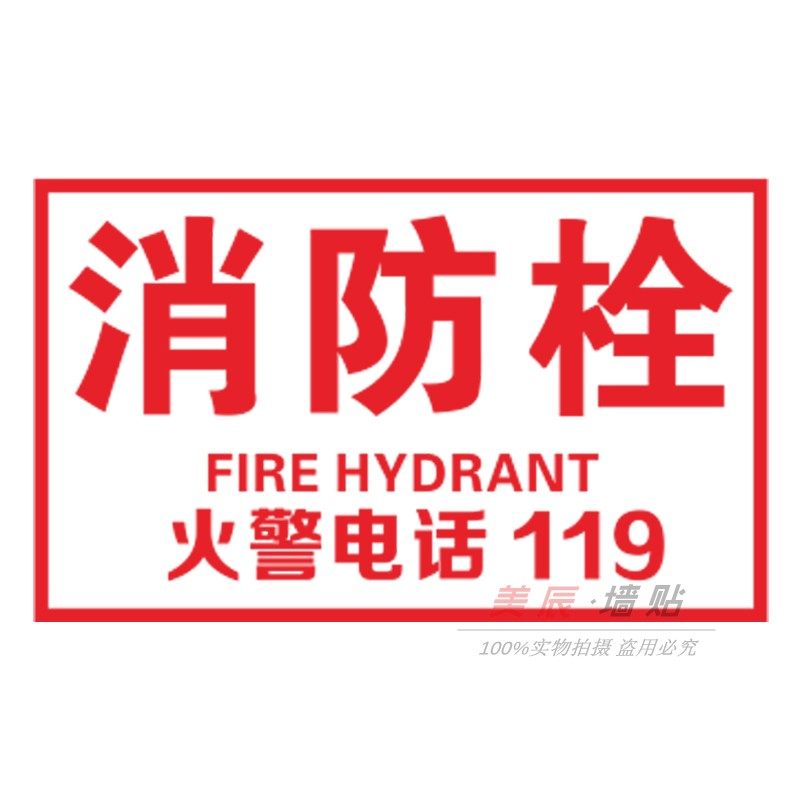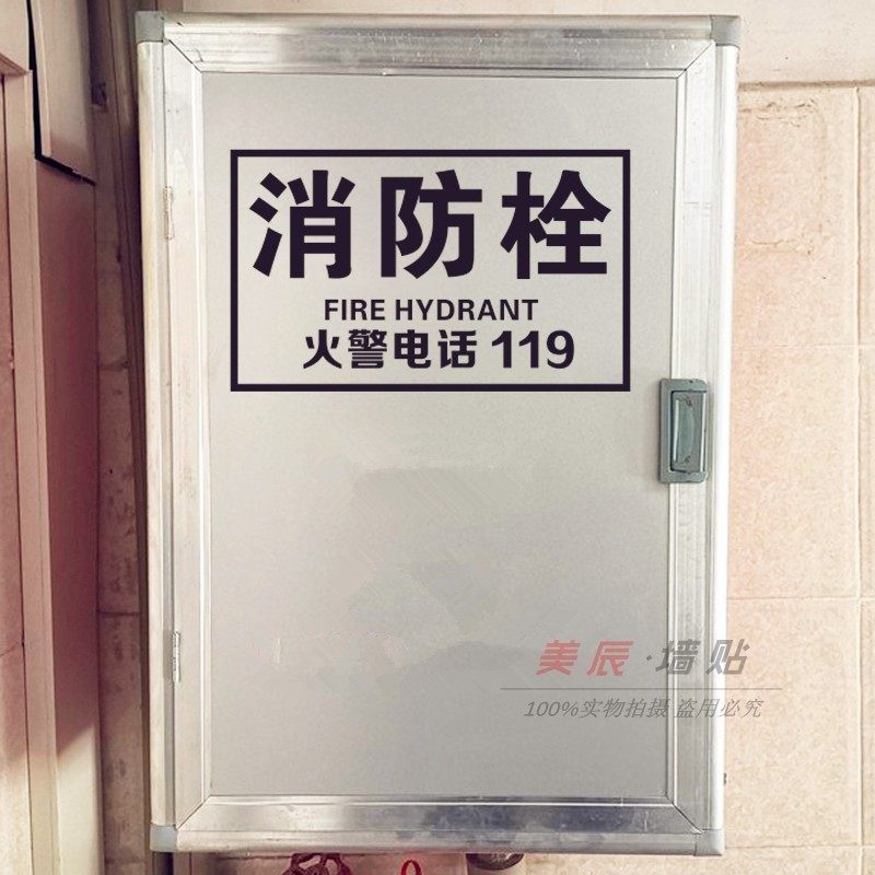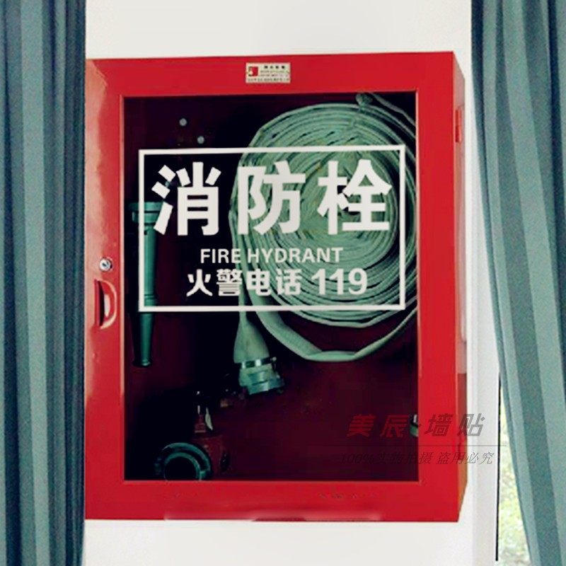 消防栓贴纸标志安全消火栓标识提示牌 火警119消防栓玻璃贴定做字