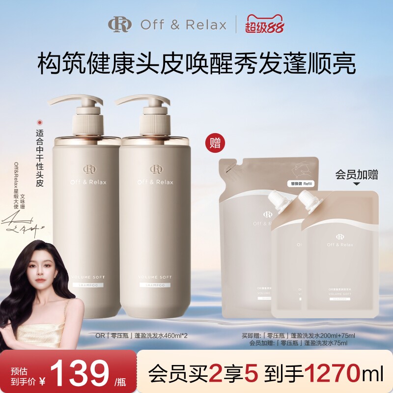 【文咏珊同款】OffRelax柔顺蓬盈洗发水2.0补水干发保湿滋养