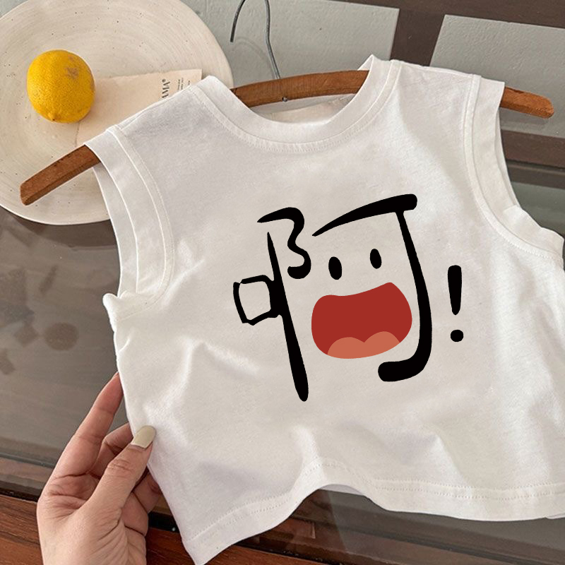 新款夏季2025宝宝纯棉透气可爱休闲打底男童女童卡通印花无袖背心