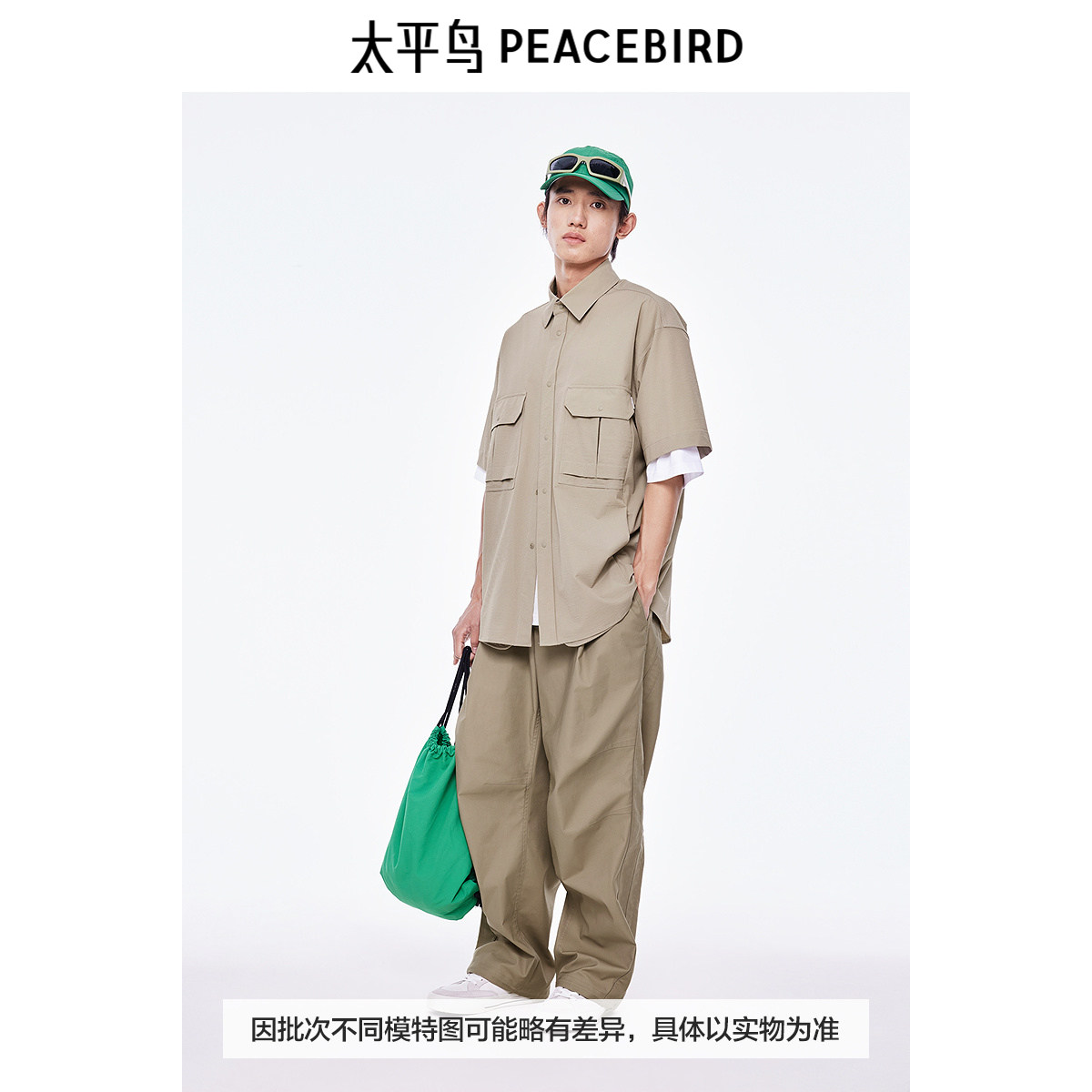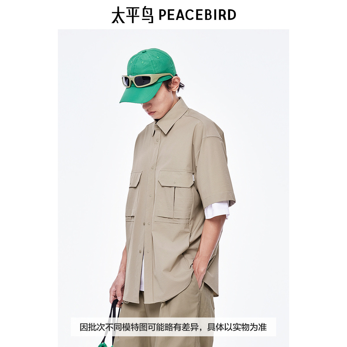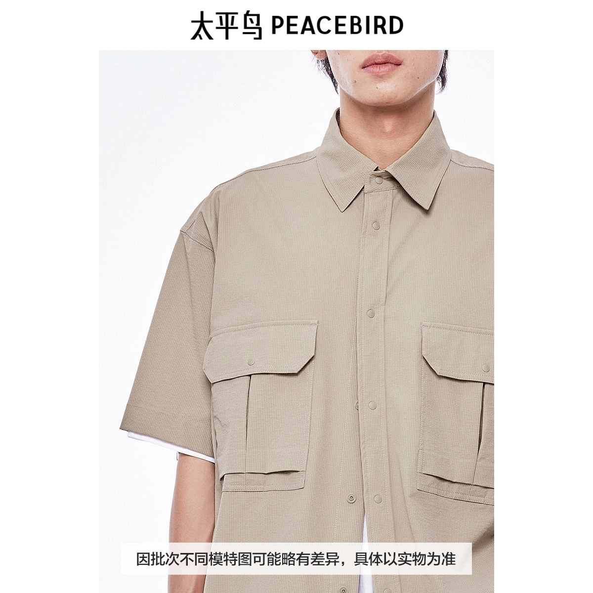 太平鸟男装衬衫新款肌理双袋工装潮 B2CJE2444