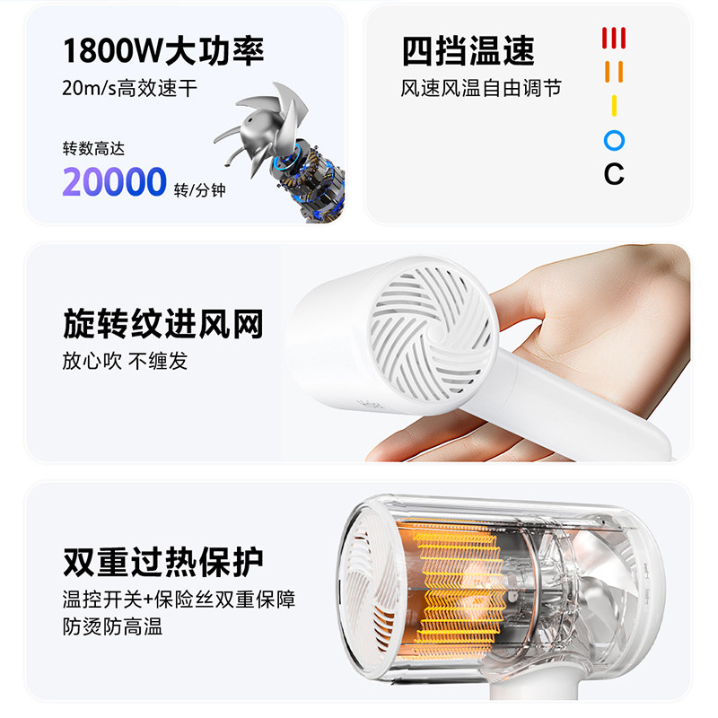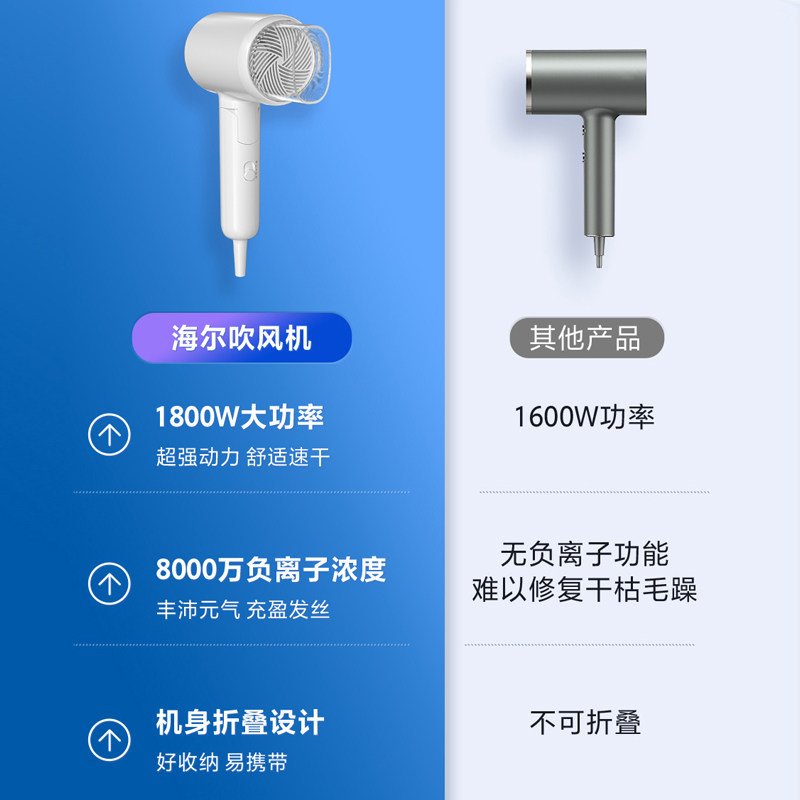 海尔吹风机负离子护发速干家用电吹风学生宿舍室内旅行常用风筒机