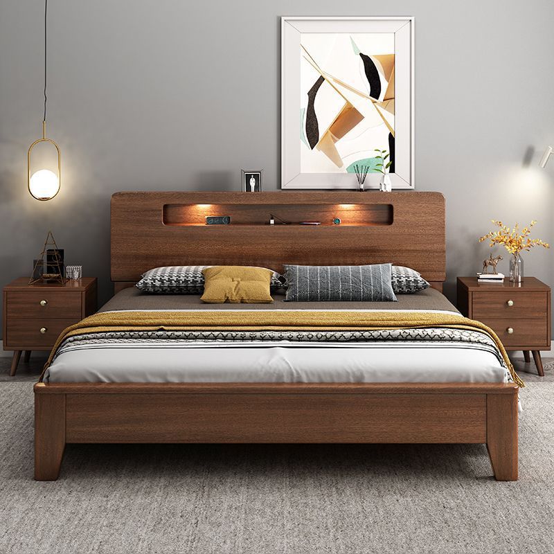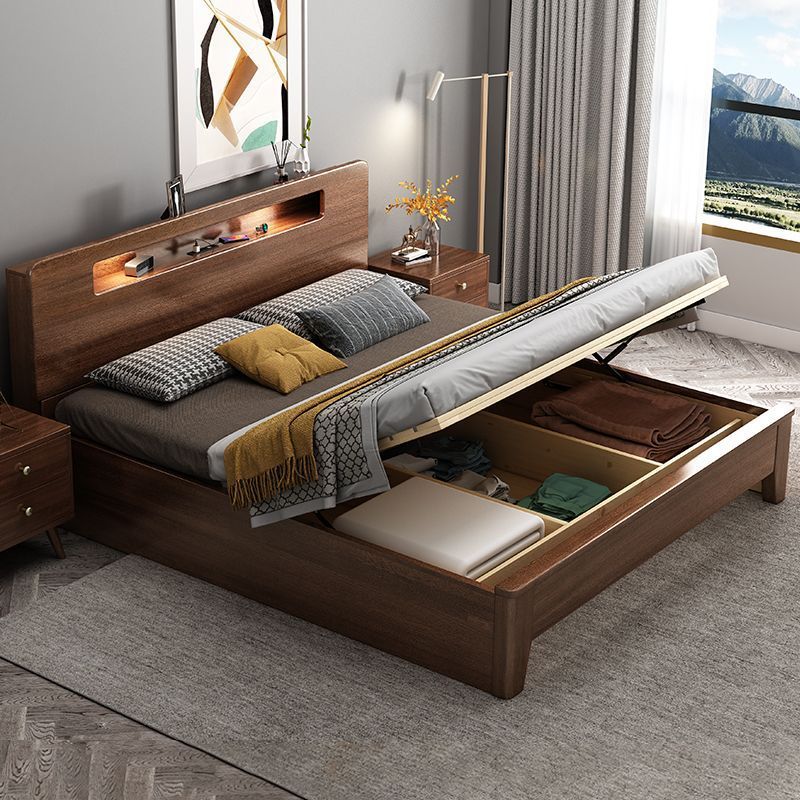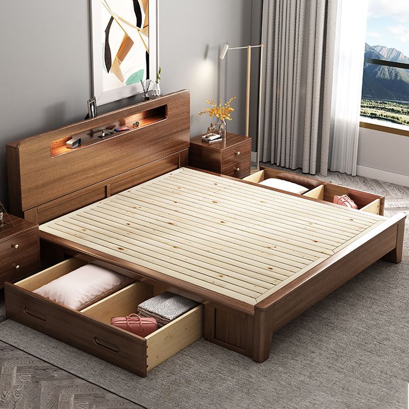 简约现代胡桃木实木床1米8床双人床主卧高箱储物床1.5米小户型床