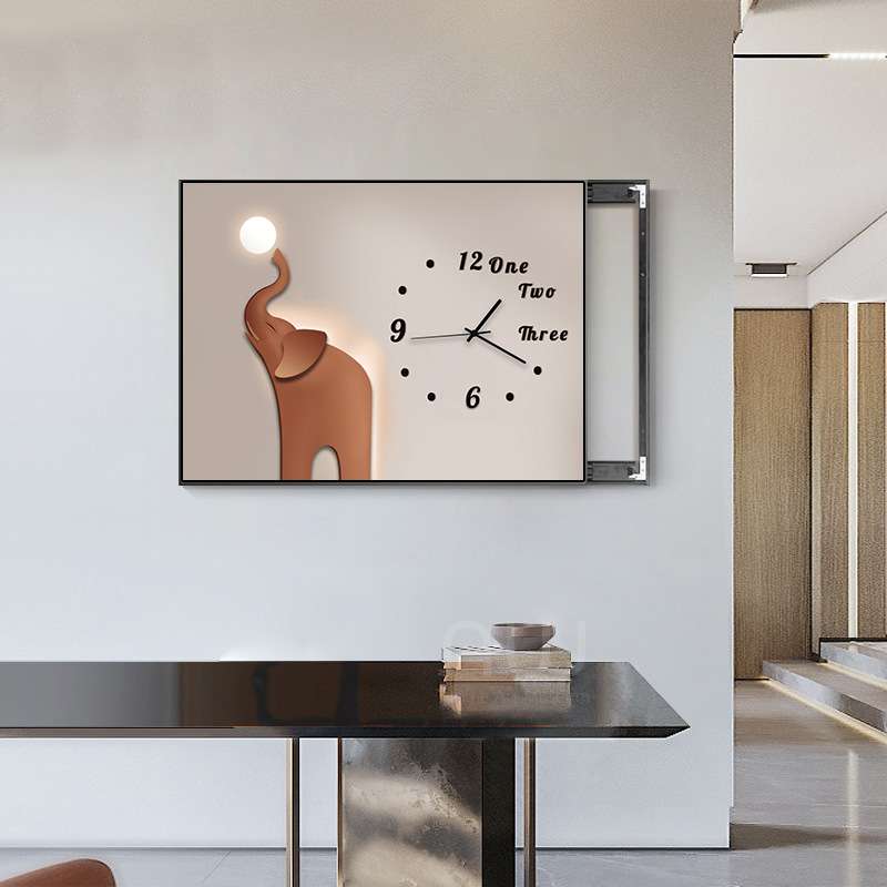现代简约餐厅电表箱装饰画带钟表时钟大尺寸配电箱电闸盒遮挡挂画