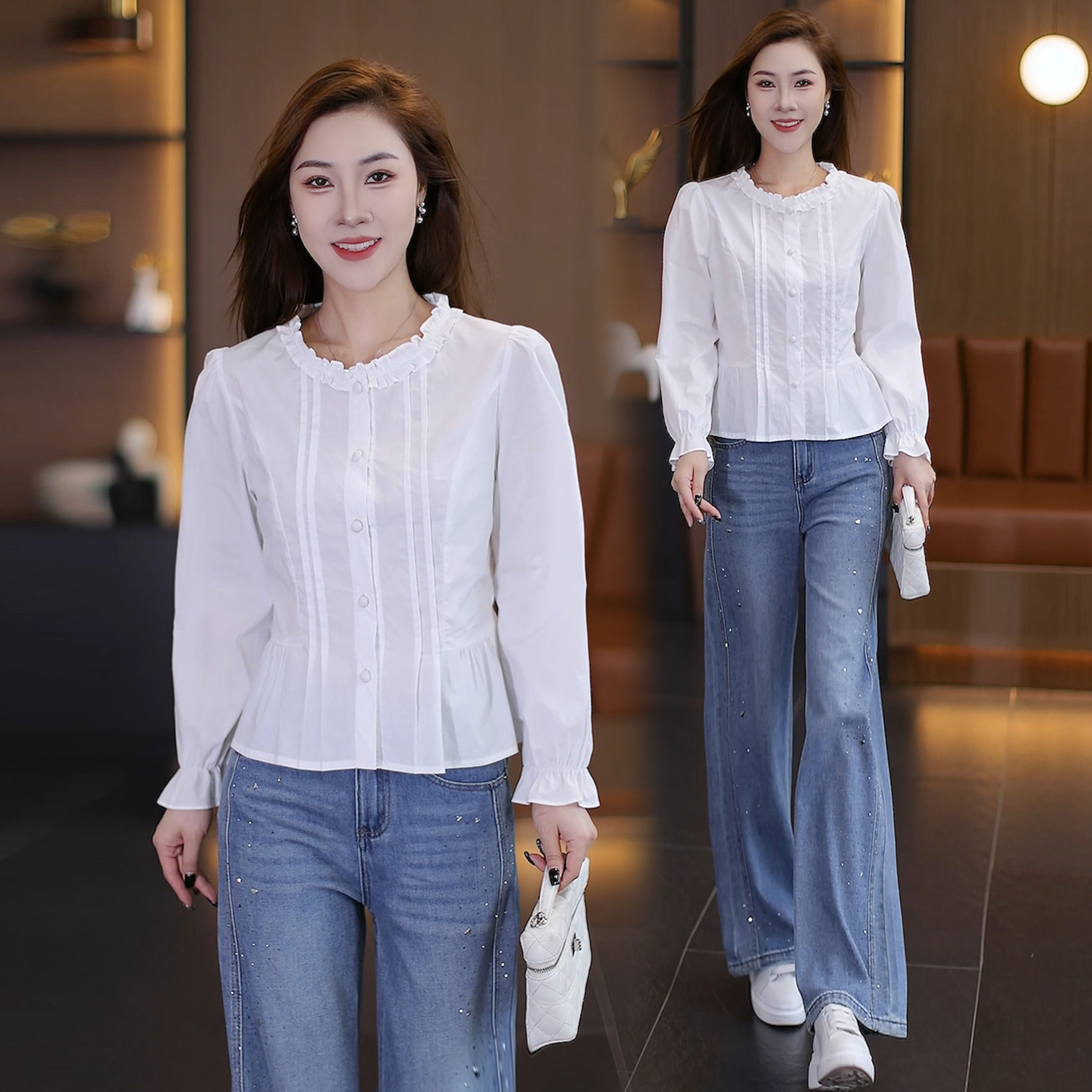 时尚衬衫女2025秋季新款洋气显瘦百搭休闲木耳花边长袖衬衣上衣潮