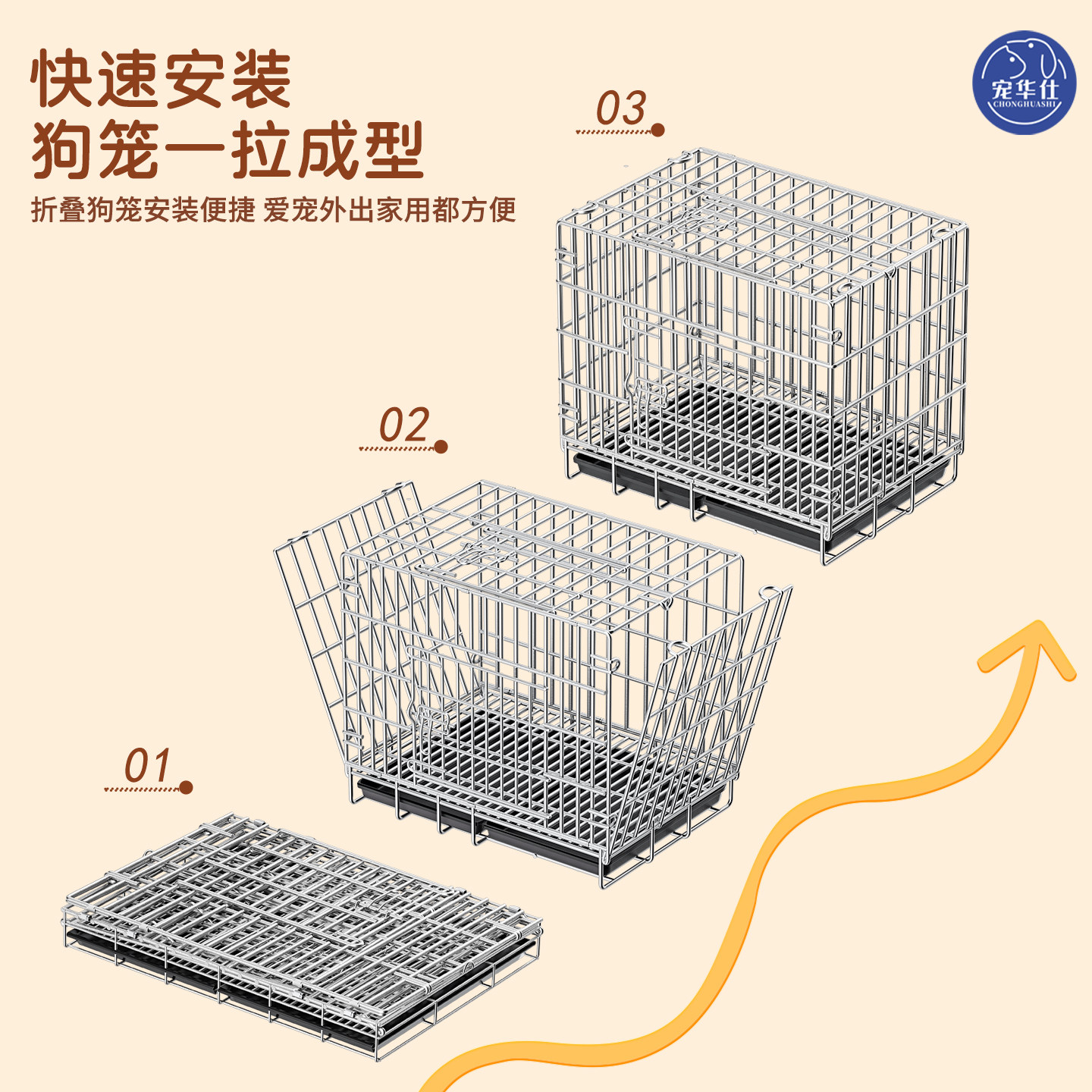 宠华仕狗笼子小型犬室内折叠带托盘泰迪比熊中型犬宠物专用狗窝
