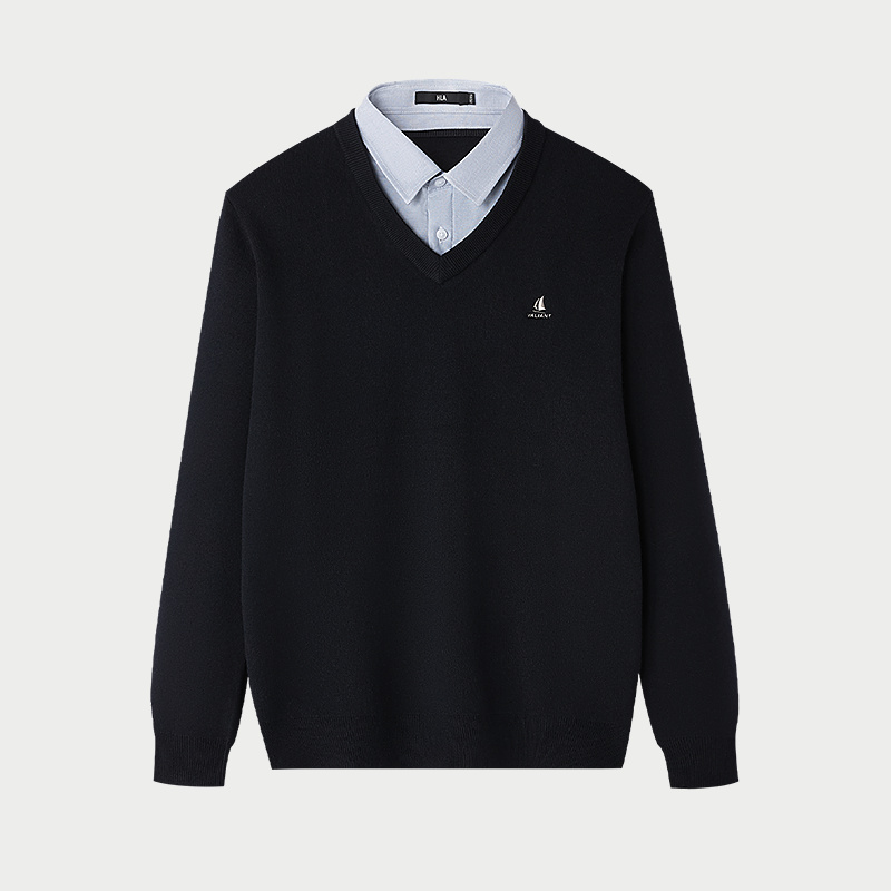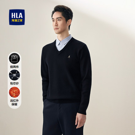 HLA/海澜之家包芯纱针织衫2025秋冬新假两件印花加厚保暖毛衣男