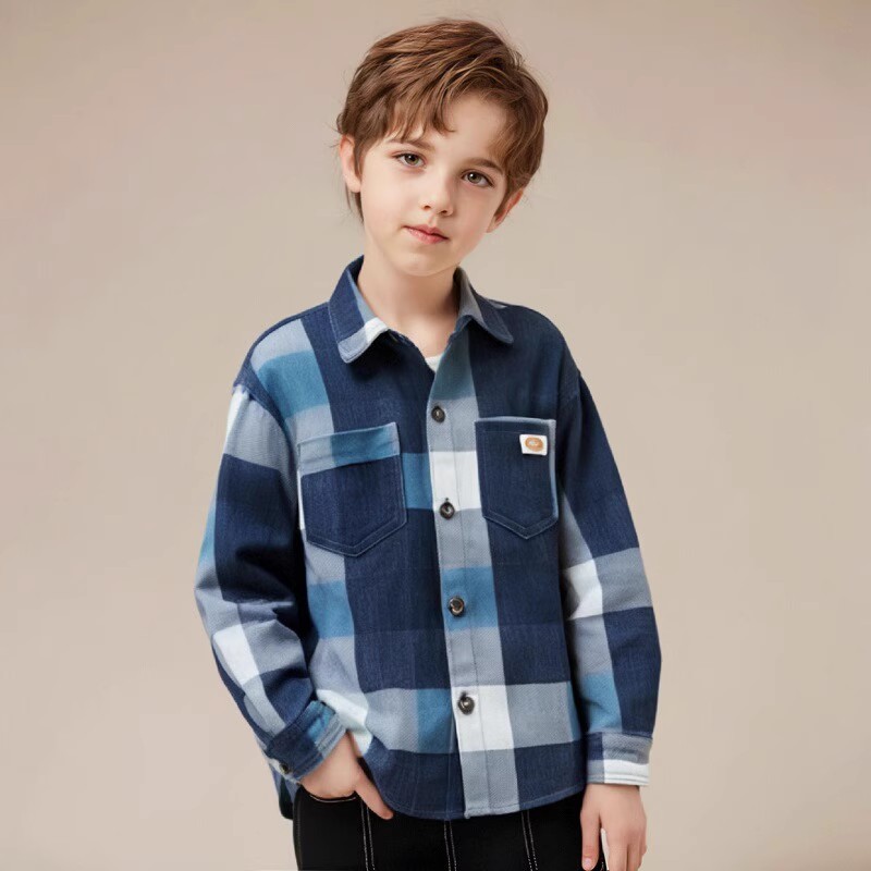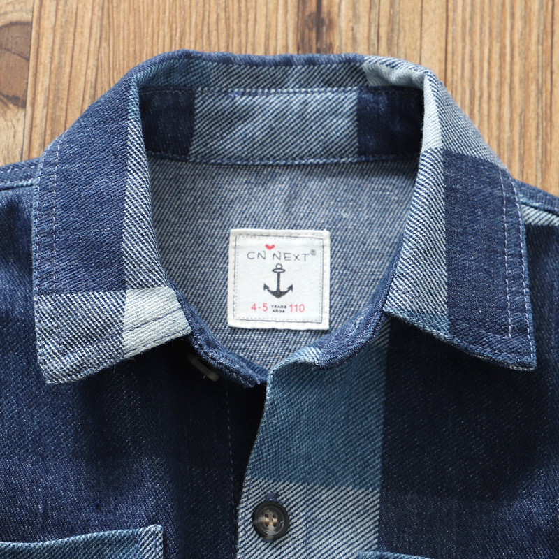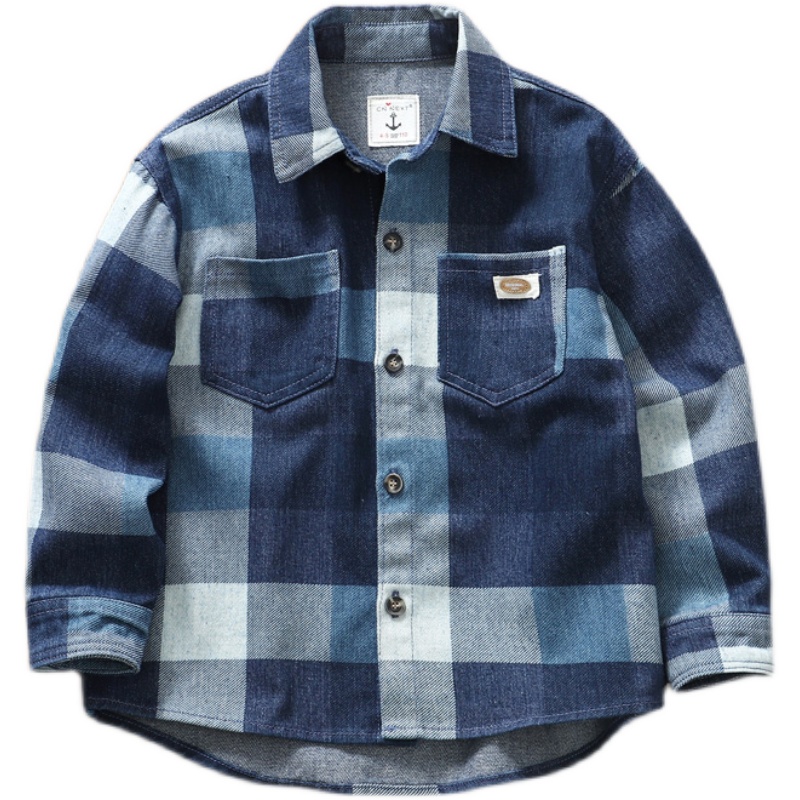 别具一格牛仔格子衬衫~男童长袖衬衫儿童小外套童装春秋加厚W9