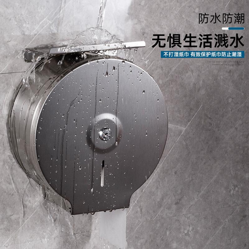 免打孔不锈钢大卷纸盒S304厕所酒店卫生间大盘手纸巾厕纸架壁挂式