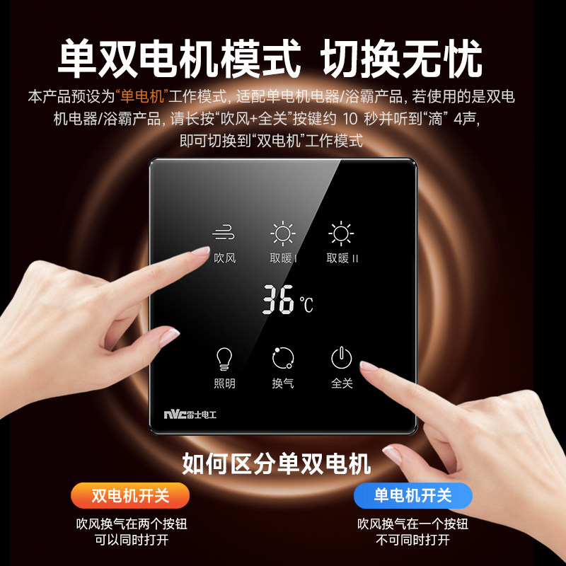 雷士官方旗舰店单火触摸浴霸开关