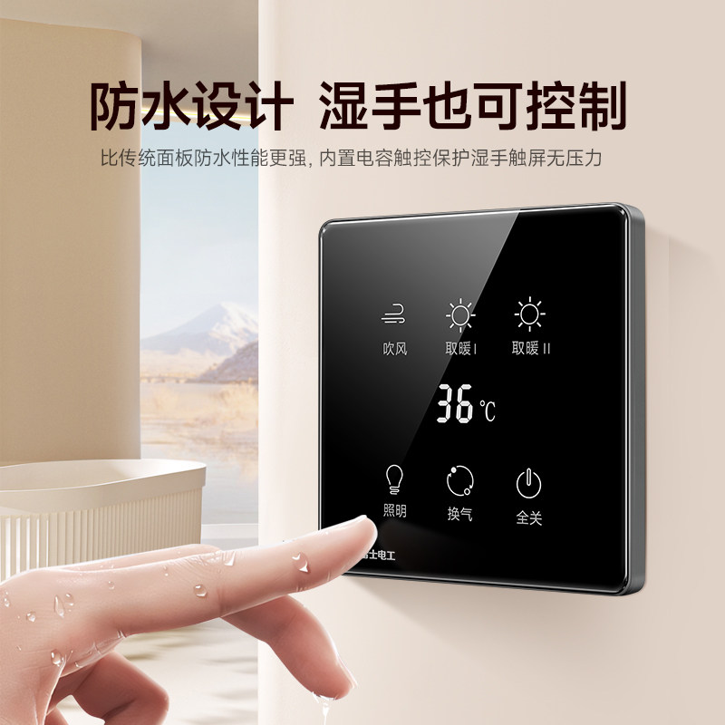 雷士电工 触摸浴霸开关 五开风暖灯暖触摸屏钢化玻璃防水面板