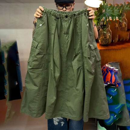 高端定制绿色大码半身工装裙2025秋季新款设计感小众宽松中长裙子