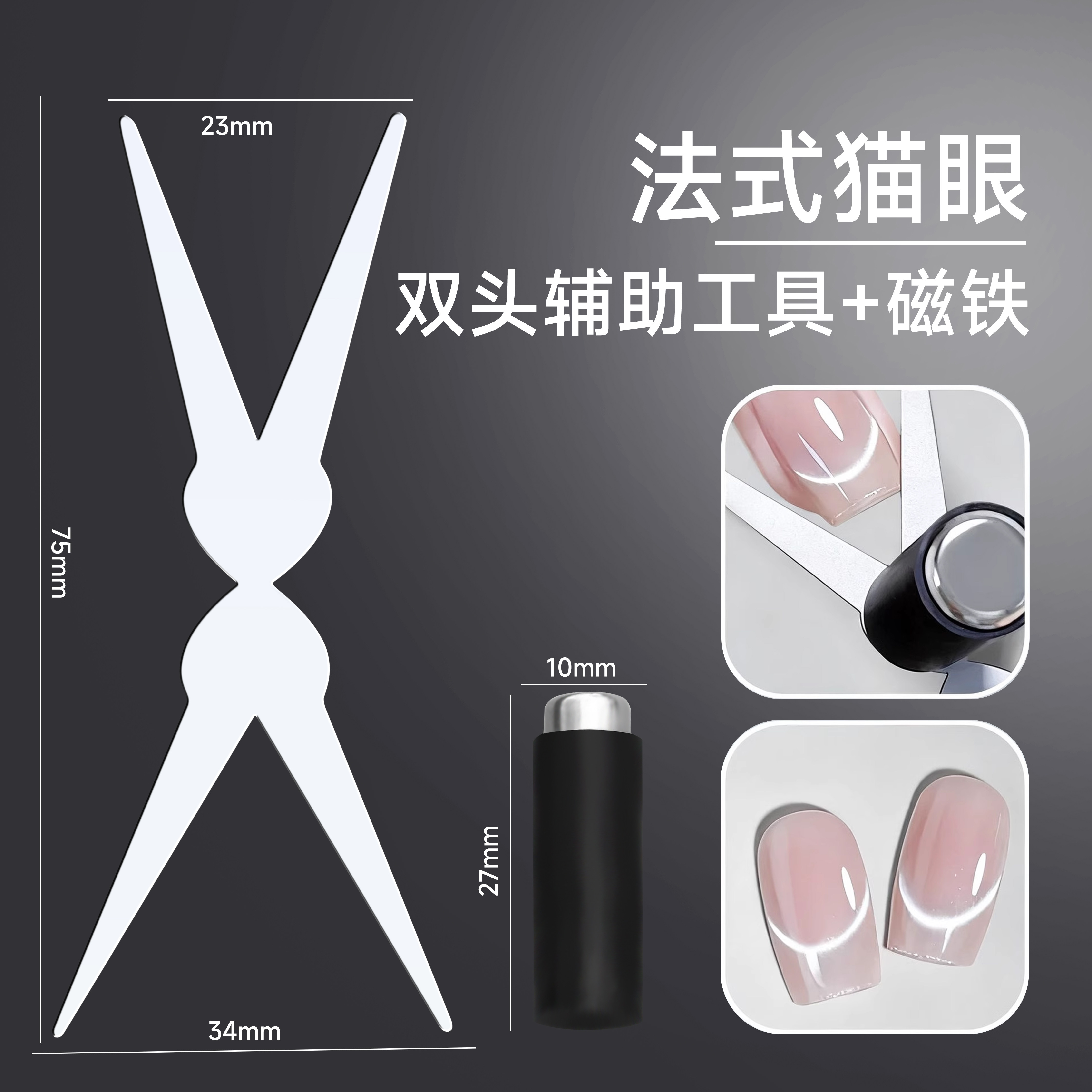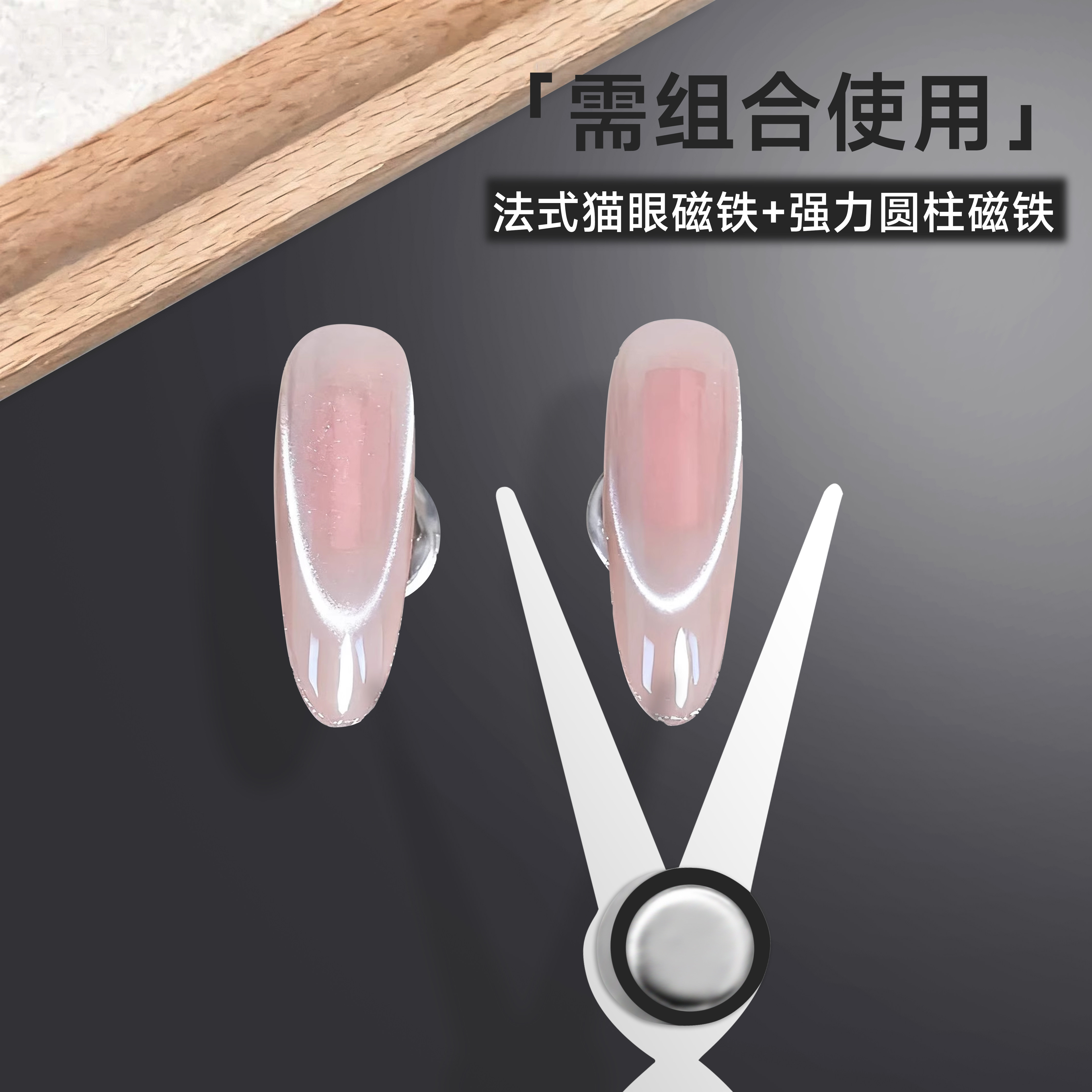 美甲双头法式铁片磁铁猫眼新手辅助加厚强磁力圆柱吸铁石指甲工具